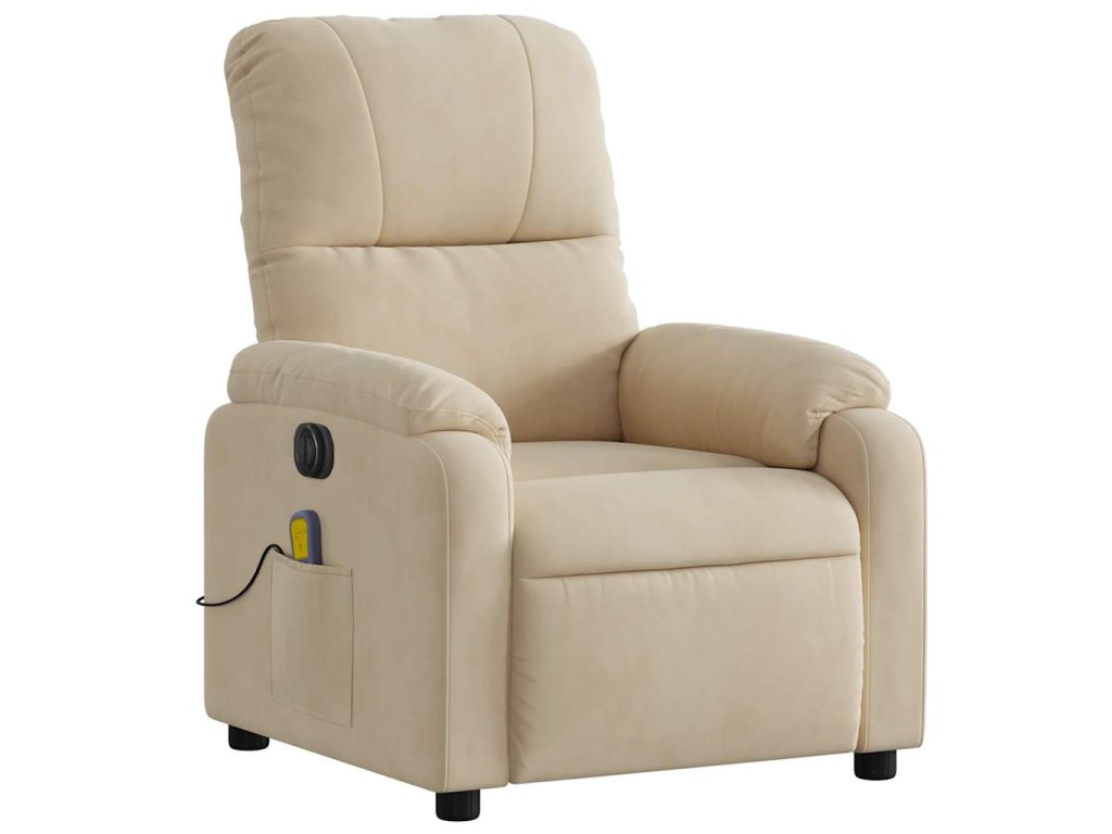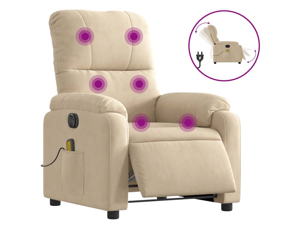 Elektrické masážní polohovací křeslo krémové mikrovlákno 3204926