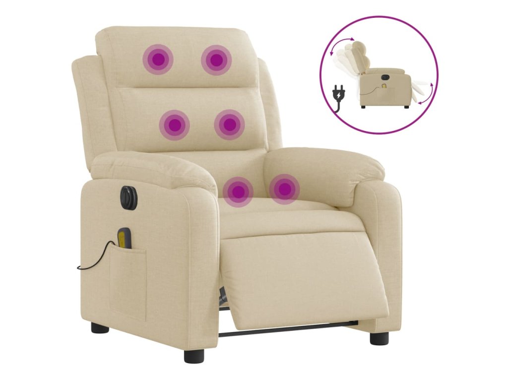 Elektrické masážní polohovací křeslo krémové textil 3204977