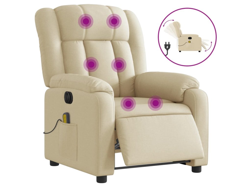 Elektrické masážní polohovací křeslo krémové textil 3205313