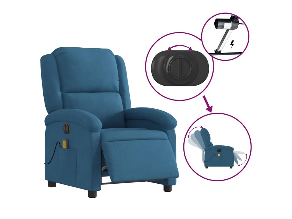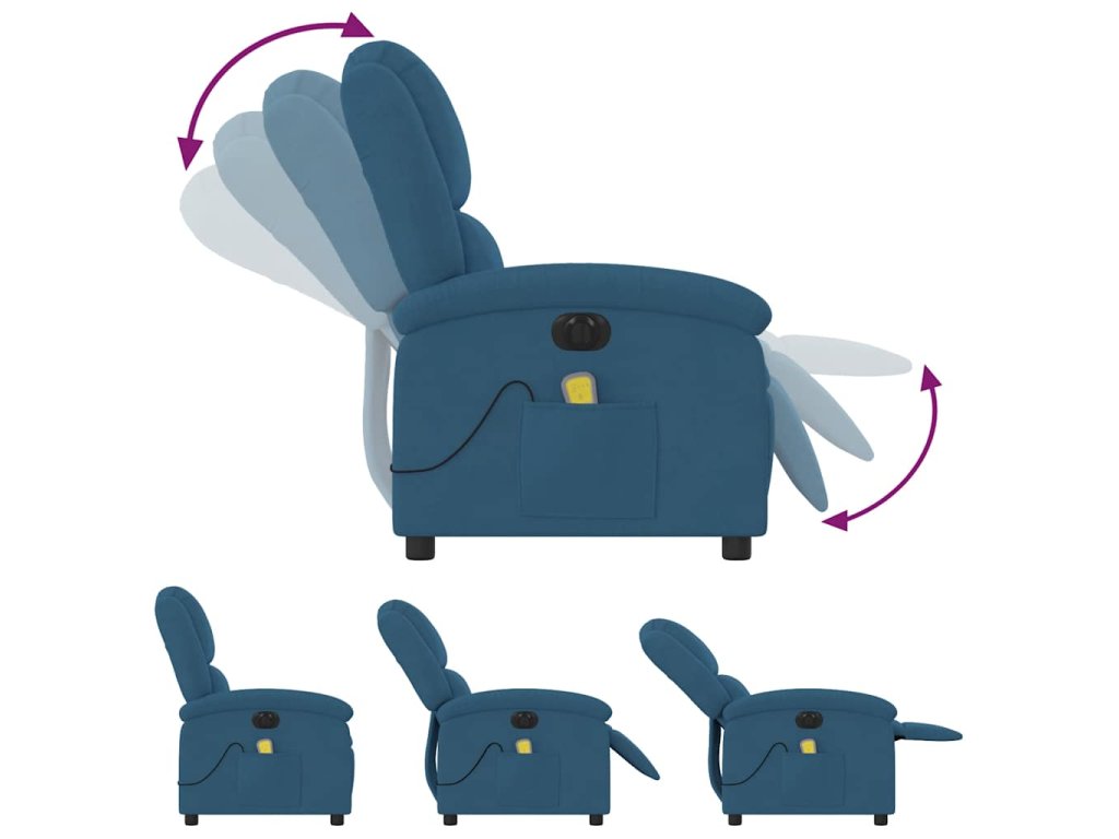 Elektrické masážní polohovací křeslo modré samet 3204299