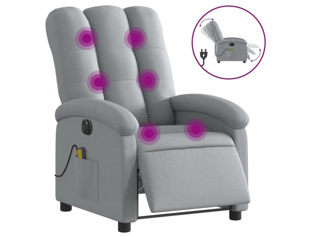 Elektrické masážní polohovací křeslo světle šedé textil 3204080