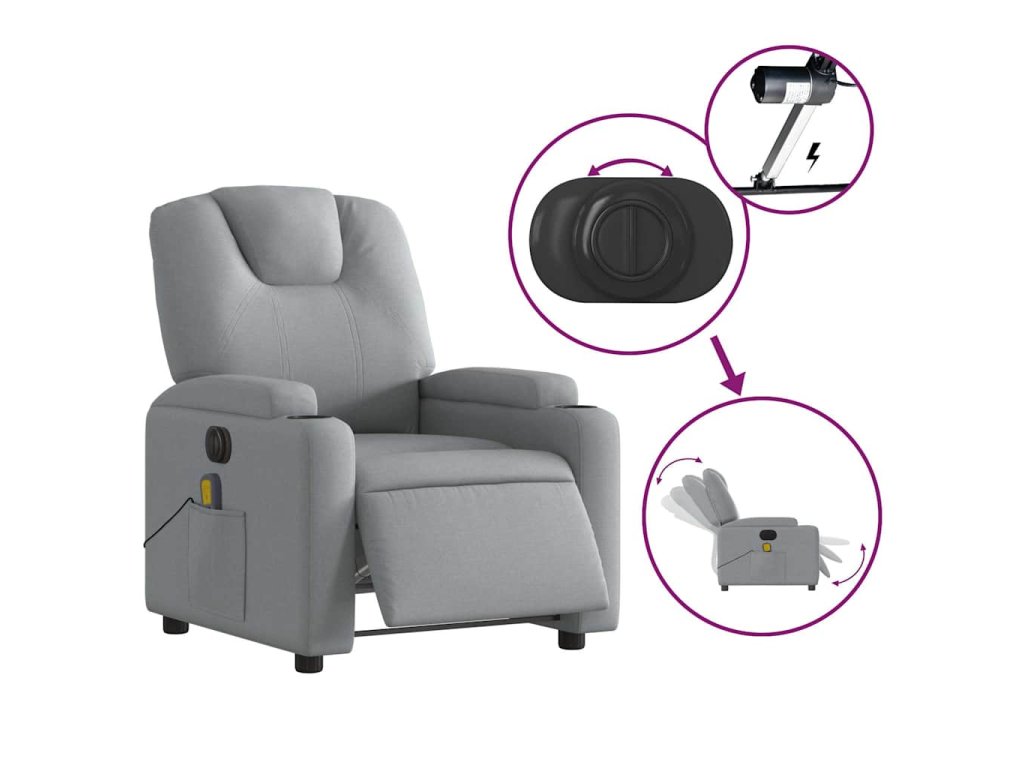 Elektrické masážní polohovací křeslo světle šedé textil 3204356
