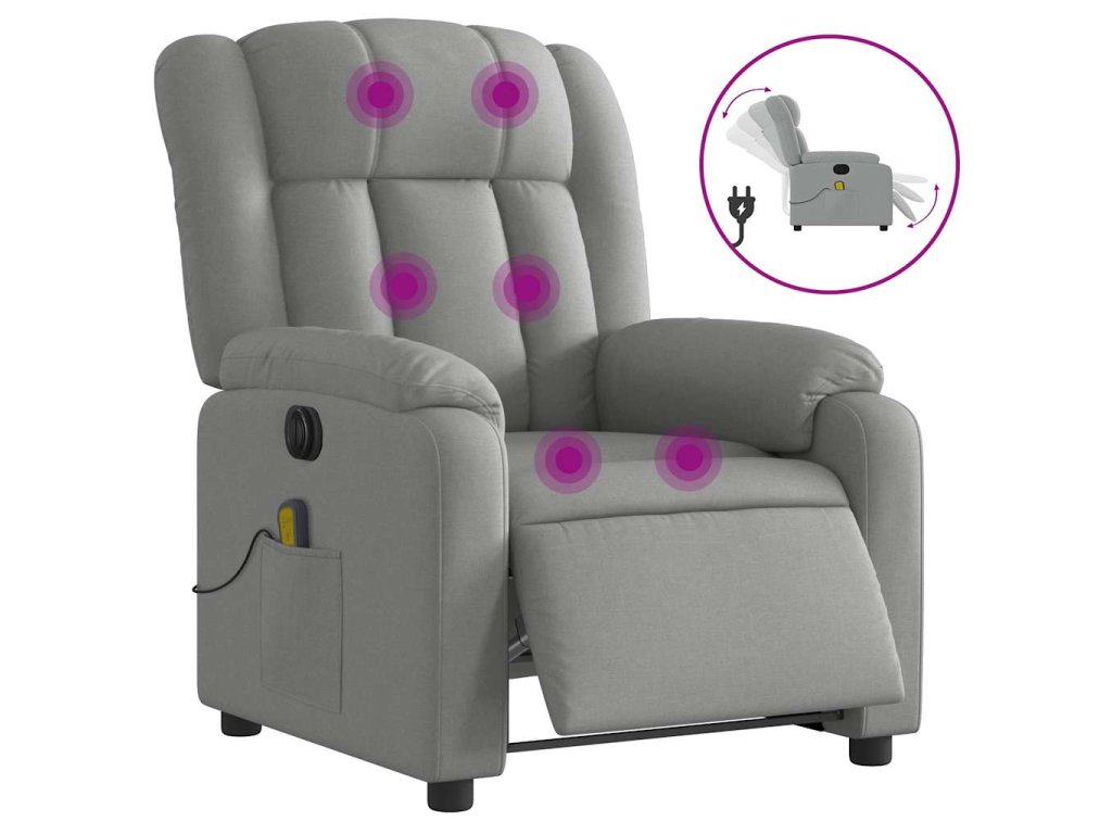 Elektrické masážní polohovací křeslo světle šedé textil 3205304