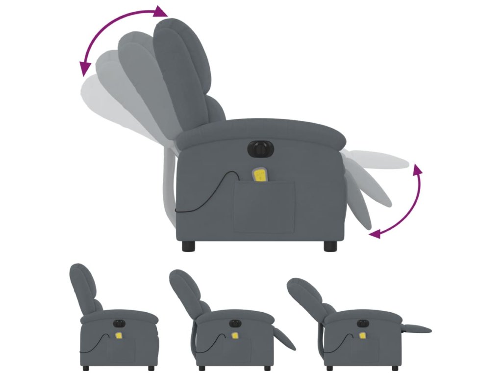 Elektrické masážní polohovací křeslo tmavě šedé samet 3204290