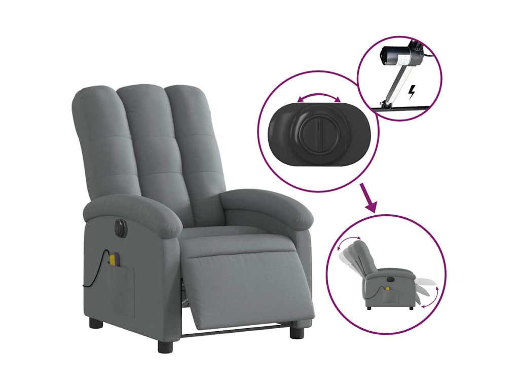 Elektrické masážní polohovací křeslo tmavě šedé textil 3204081