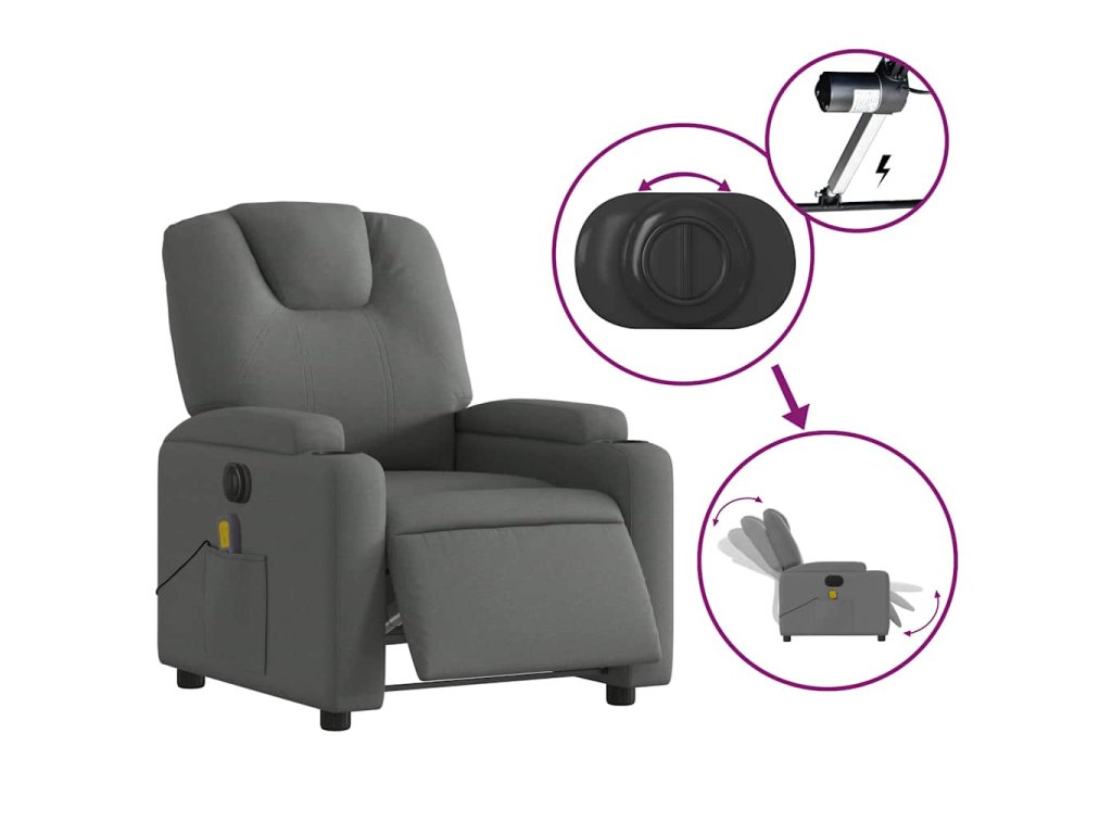 Elektrické masážní polohovací křeslo tmavě šedé textil 3204357