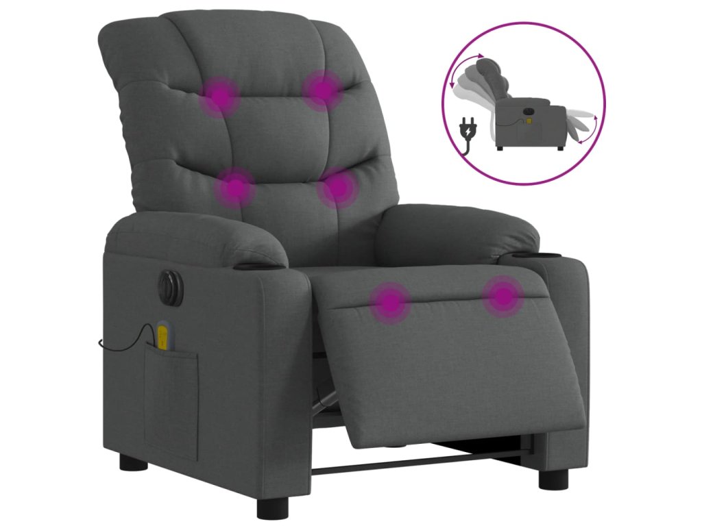Elektrické masážní polohovací křeslo tmavě šedé textil 3206637