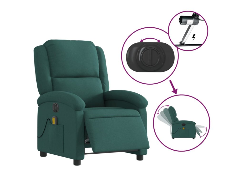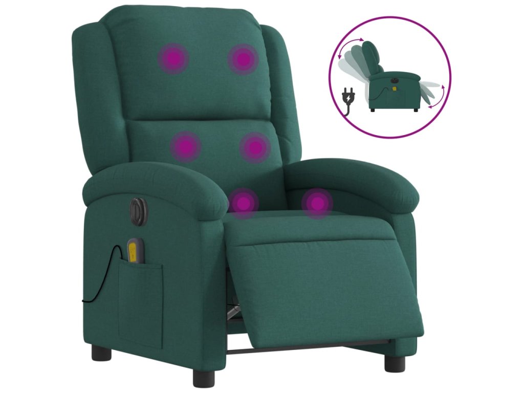 Elektrické masážní polohovací křeslo tmavě zelené textil 3204158