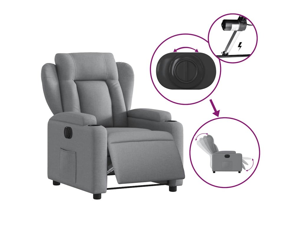 Elektrické polohovací křeslo světle šedé textil 3204458