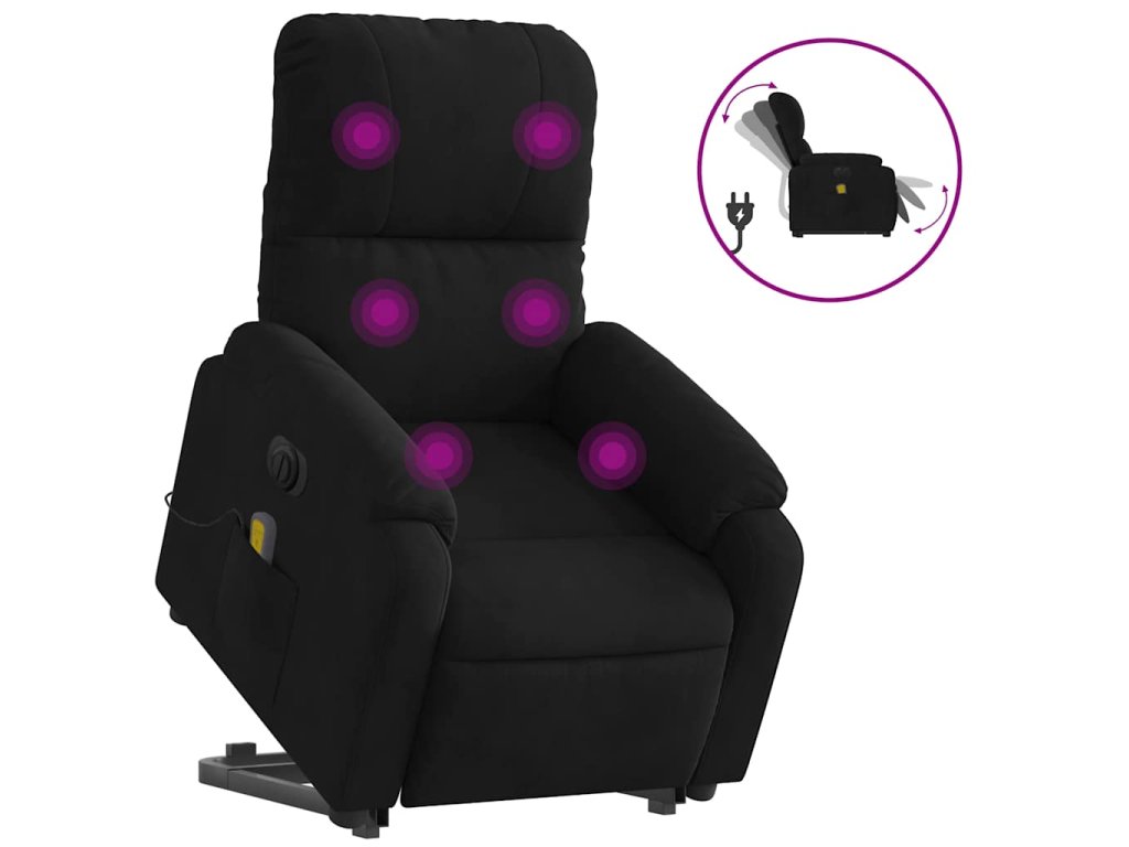 Elektrické zvedací masážní polohovací křeslo černé mikrovlákno 3204953