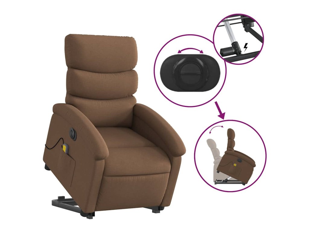 Elektrické zvedací masážní polohovací křeslo hnědé textil 3204018
