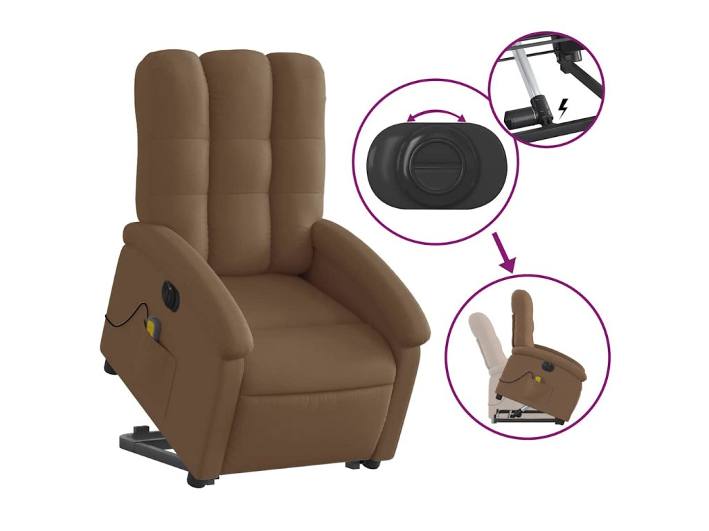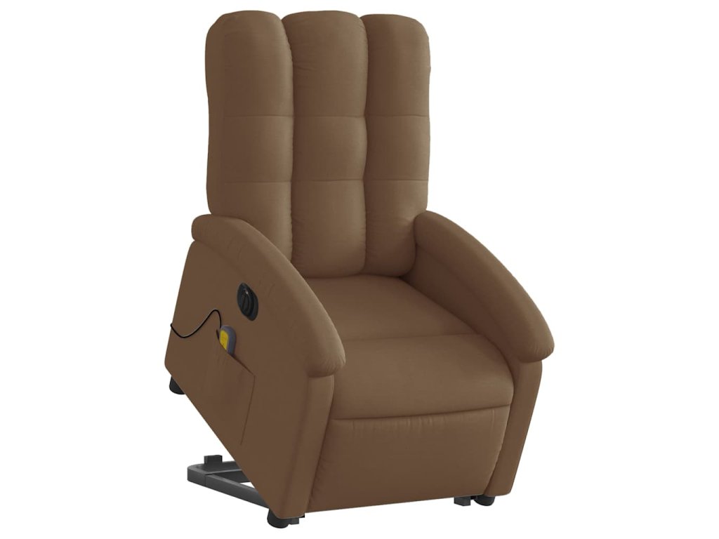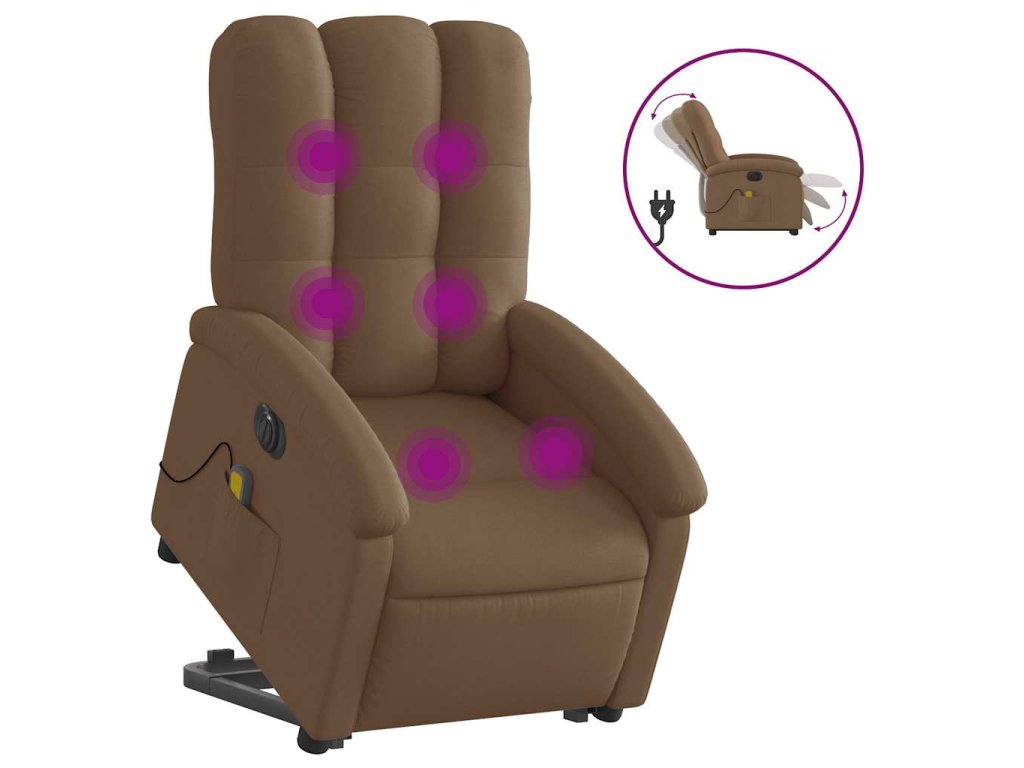 Elektrické zvedací masážní polohovací křeslo hnědé textil 3204132