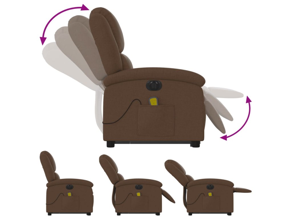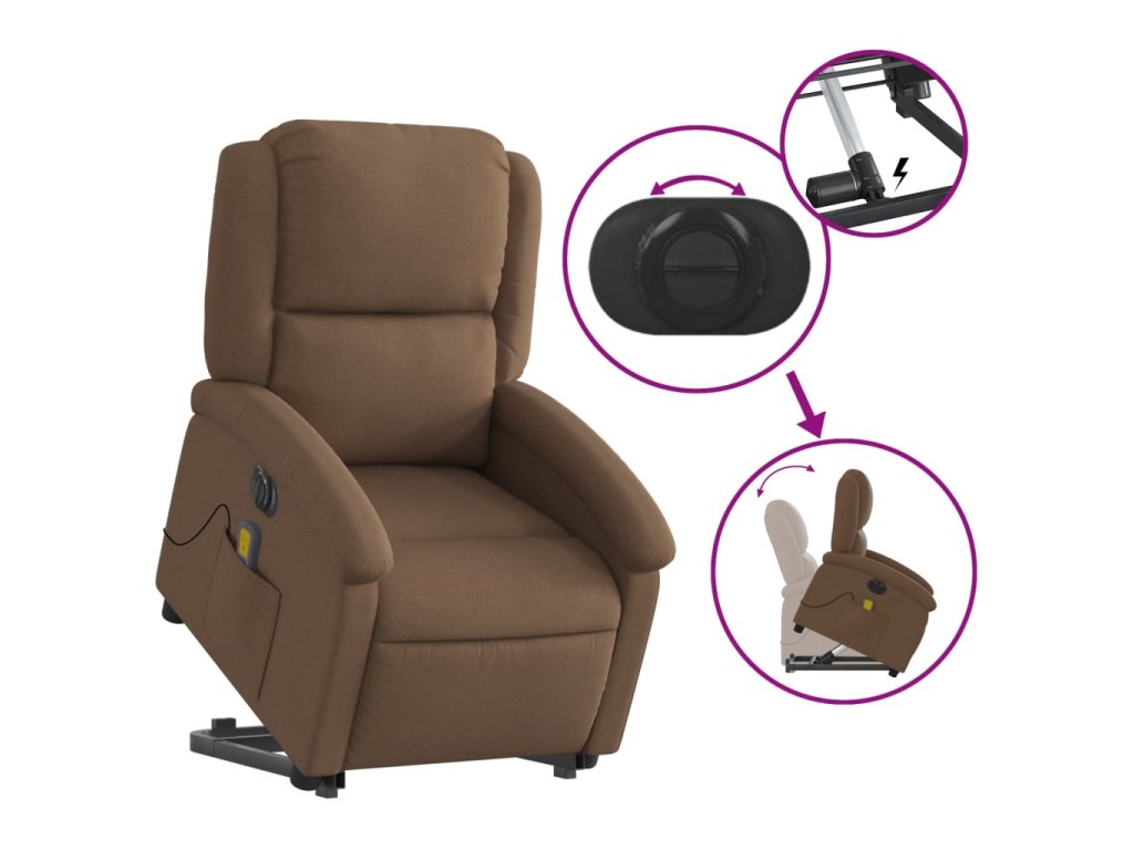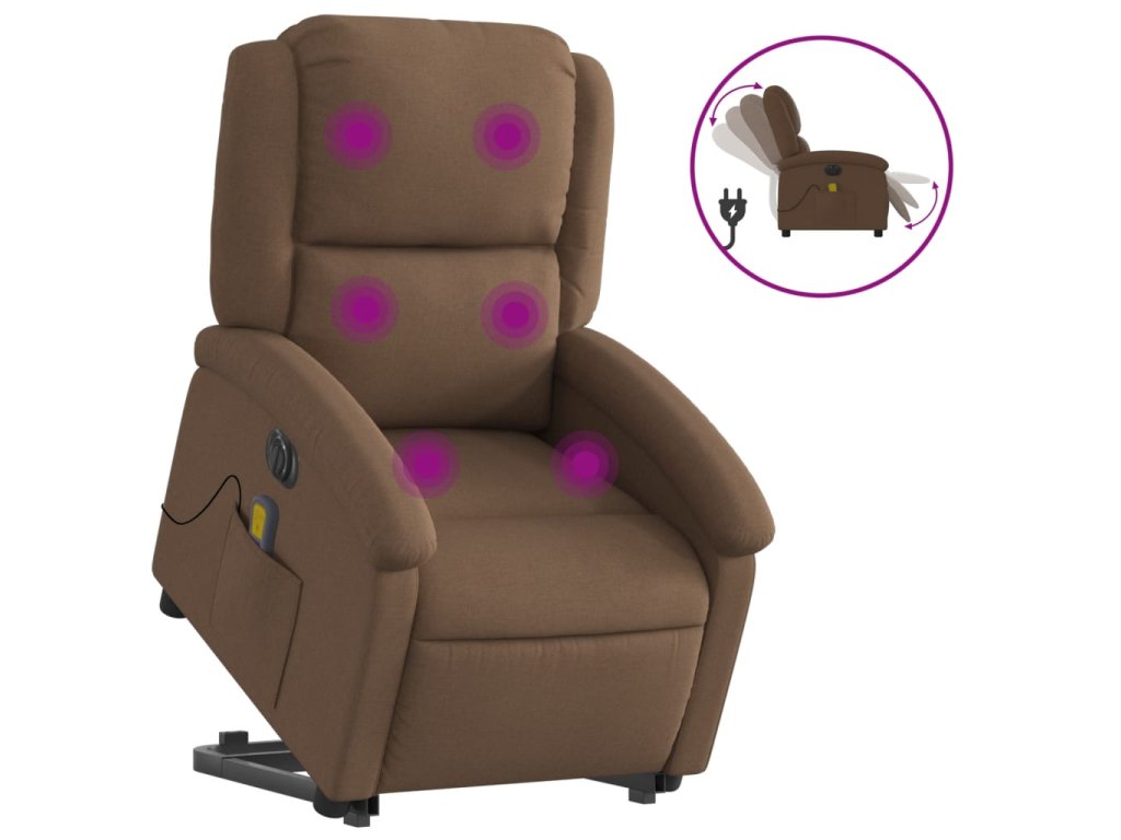 Elektrické zvedací masážní polohovací křeslo hnědé textil 3204204
