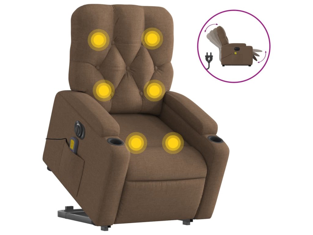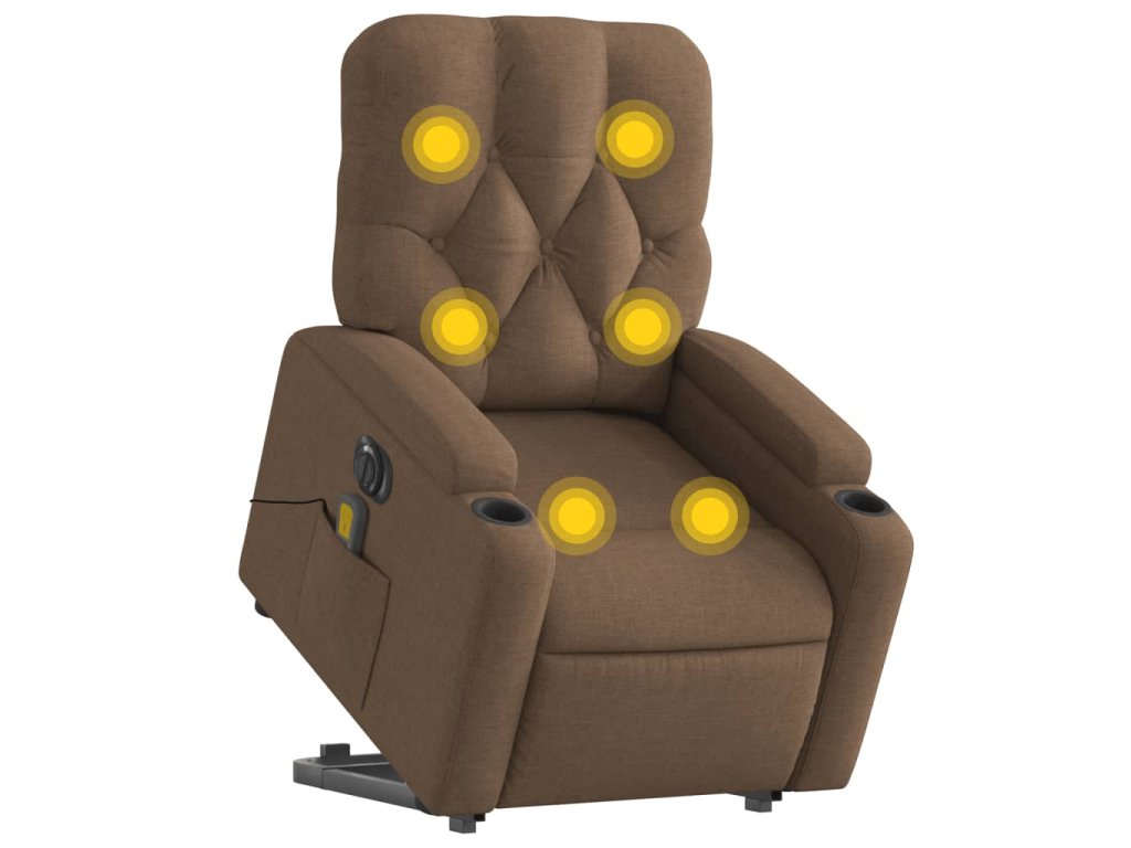 Elektrické zvedací masážní polohovací křeslo hnědé textil 3204750