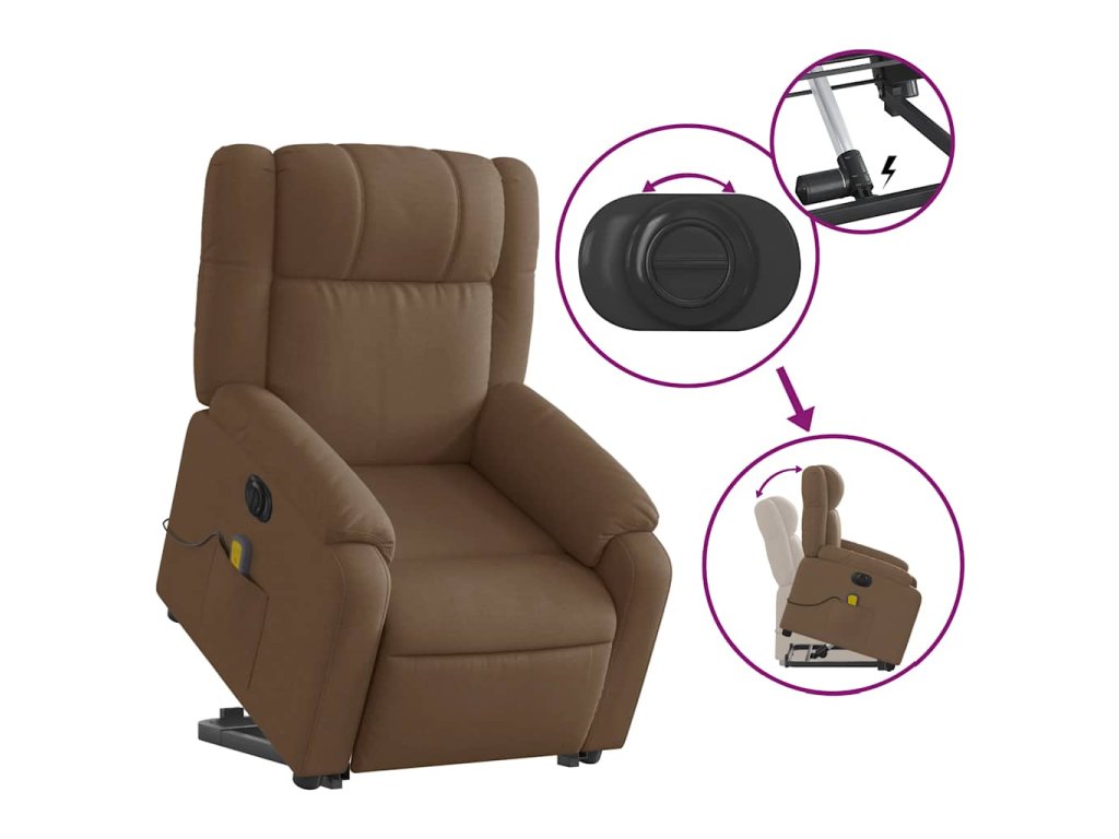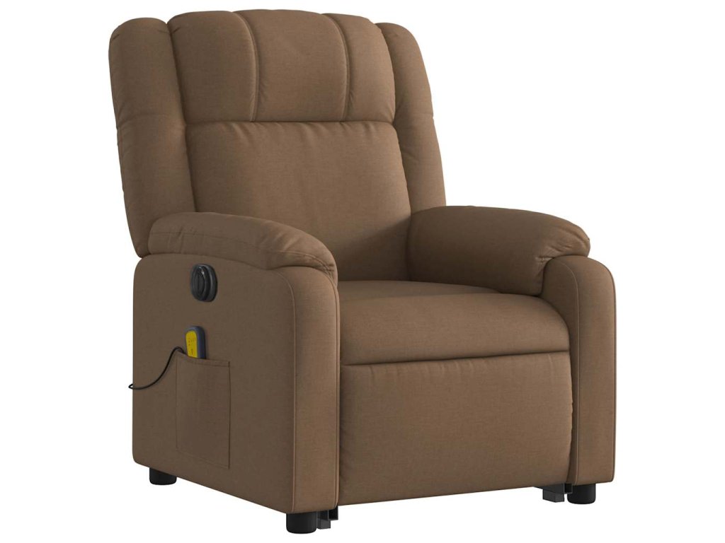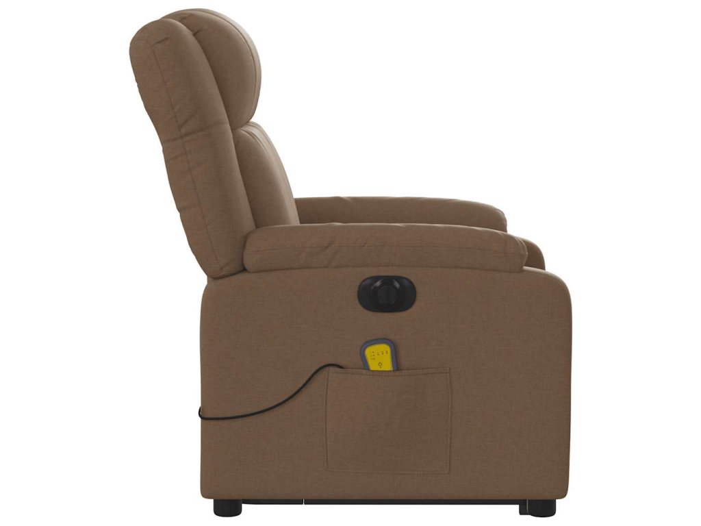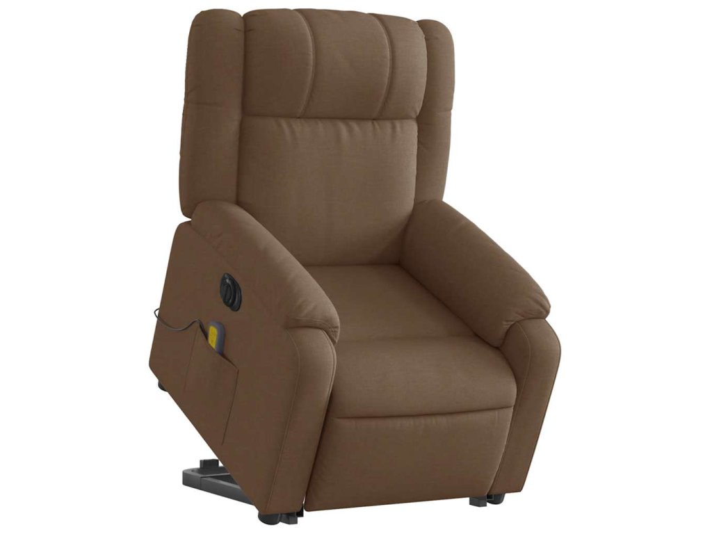 Elektrické zvedací masážní polohovací křeslo hnědé textil 3205242