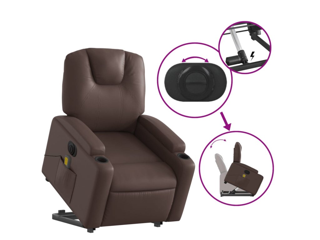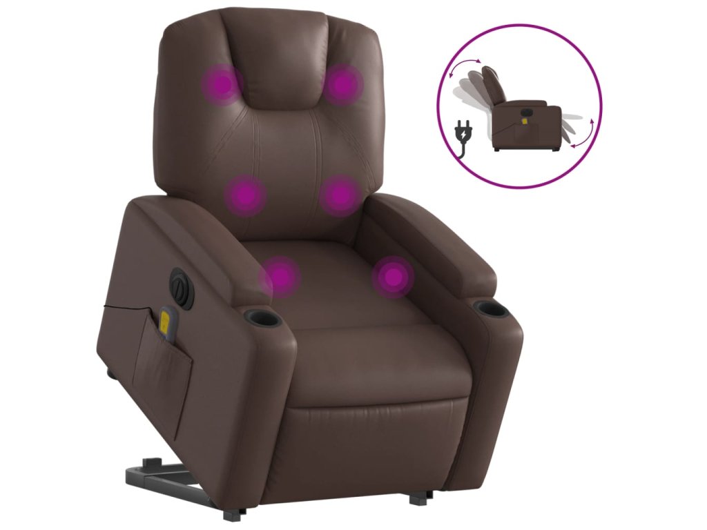 Elektrické zvedací masážní polohovací křeslo hnědé umělá kůže 3204453