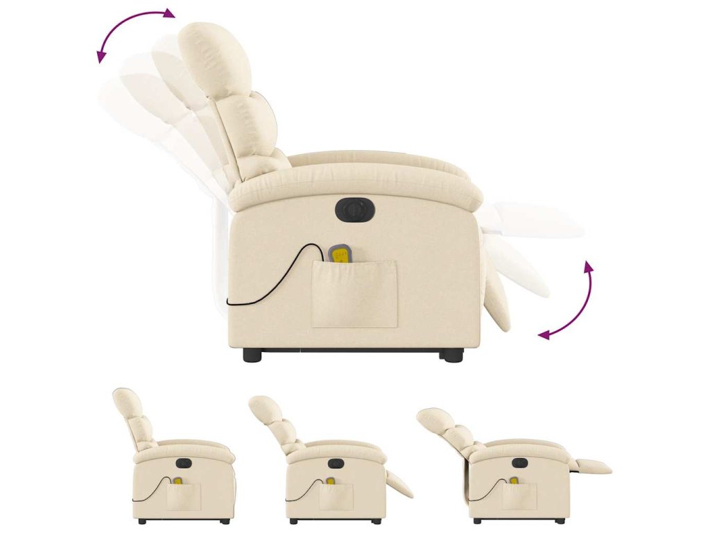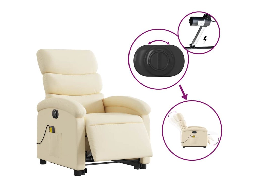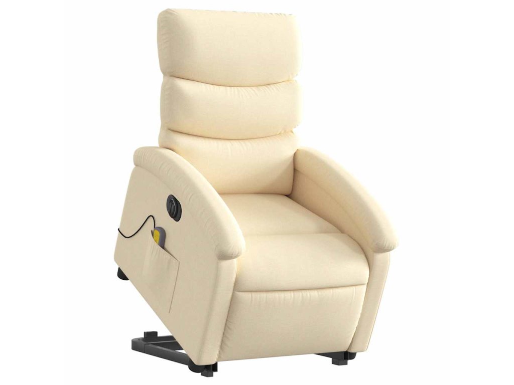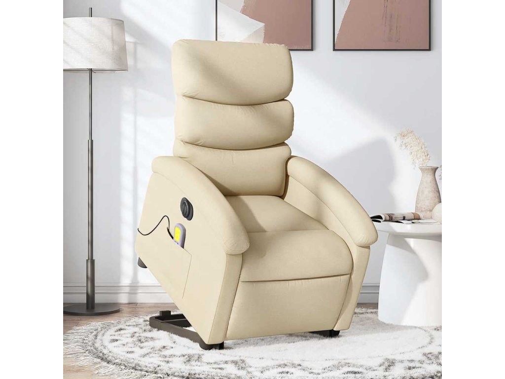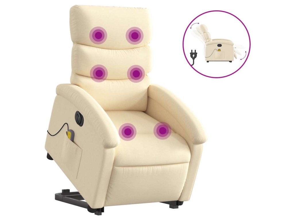 Elektrické zvedací masážní polohovací křeslo krémové textil 3204023