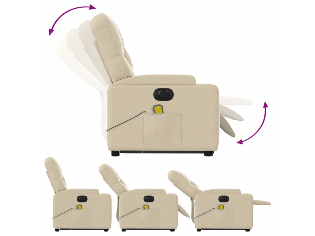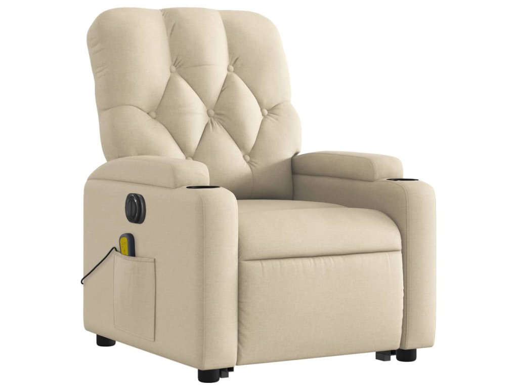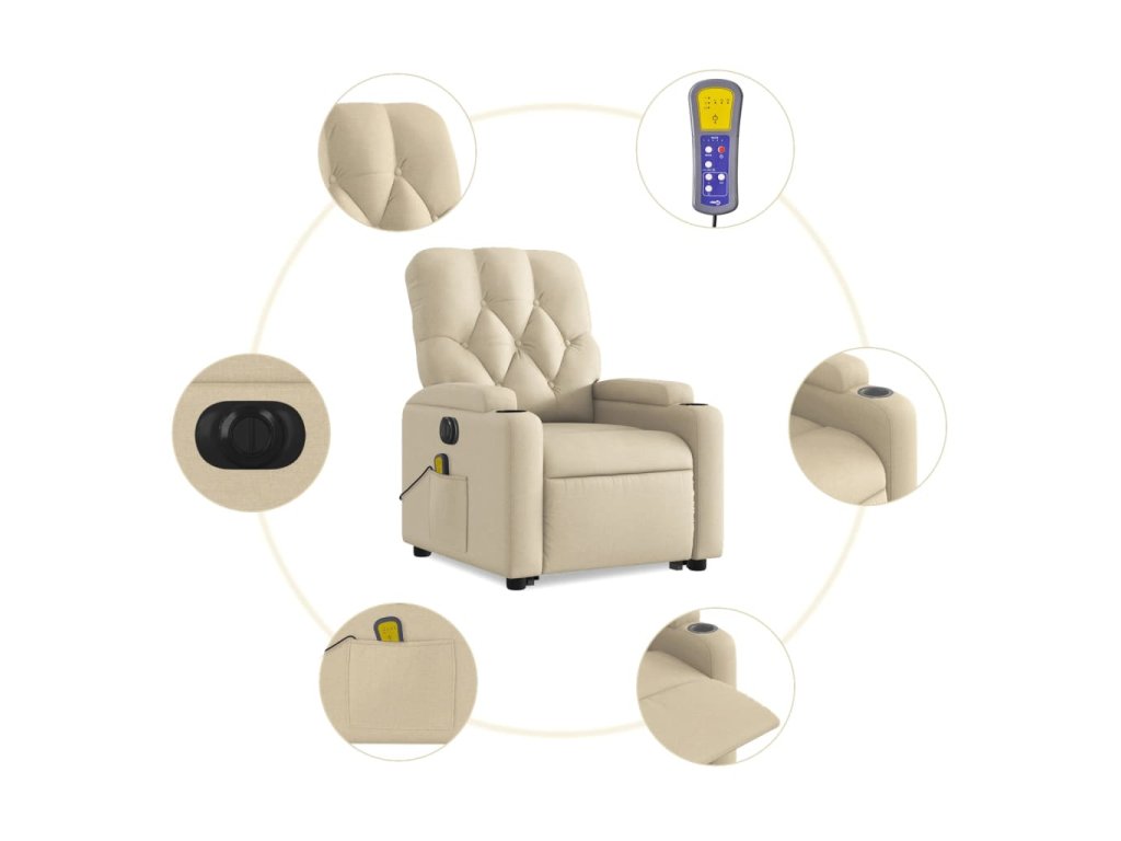 Elektrické zvedací masážní polohovací křeslo krémové textil 3204755