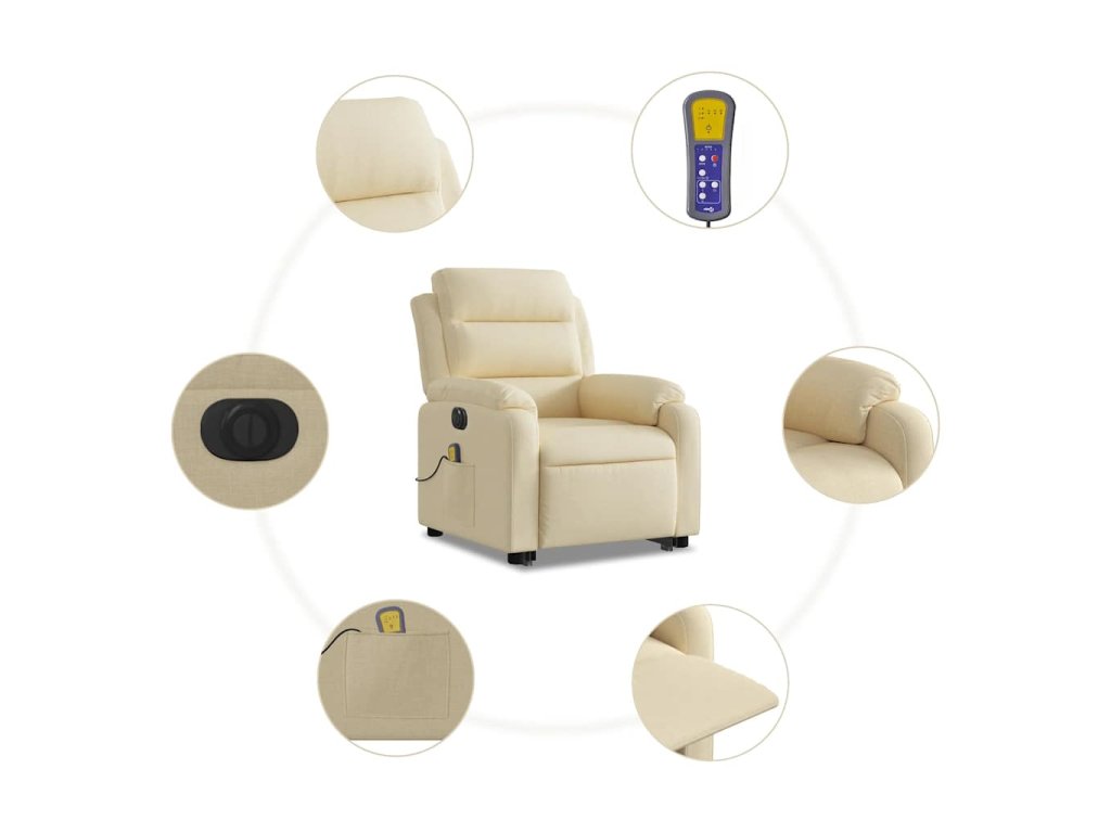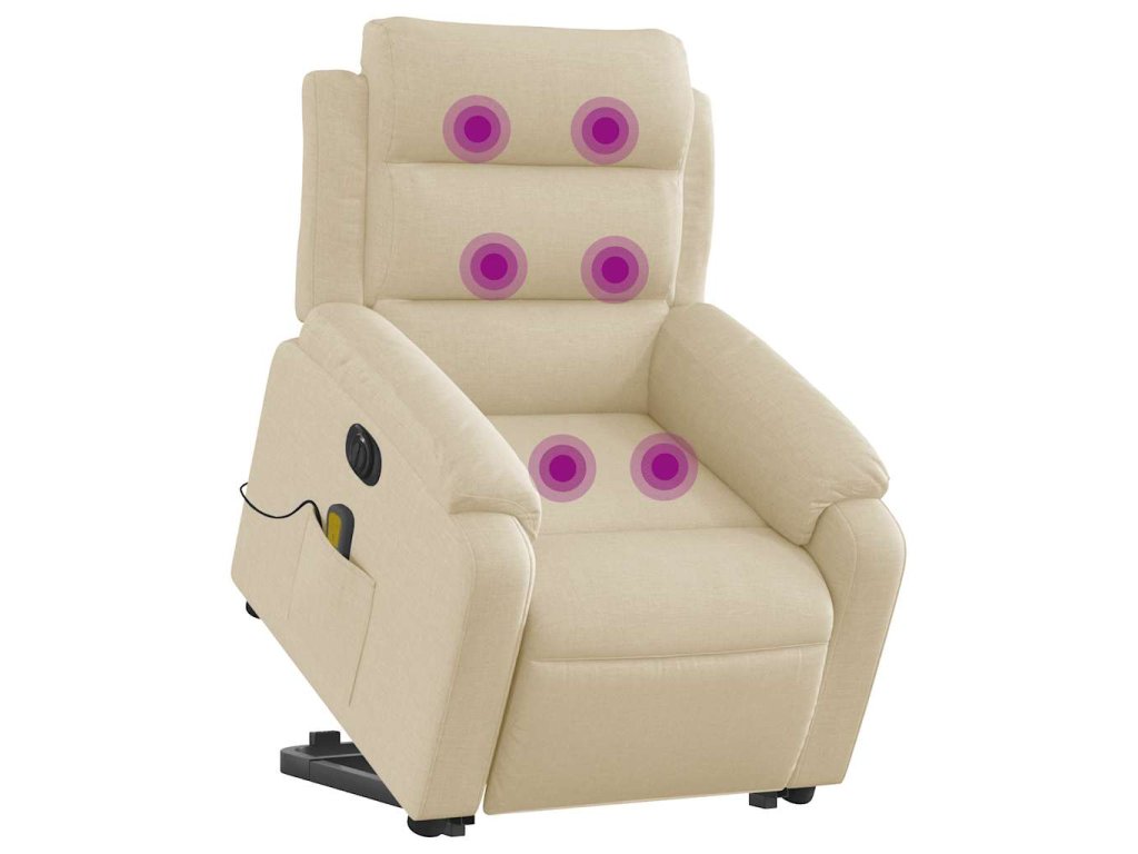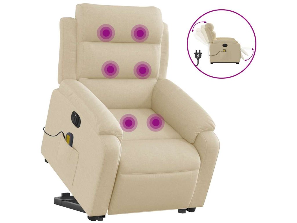 Elektrické zvedací masážní polohovací křeslo krémové textil 3205025
