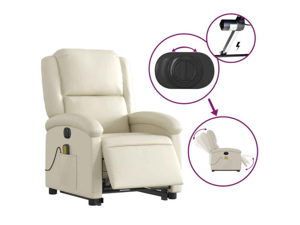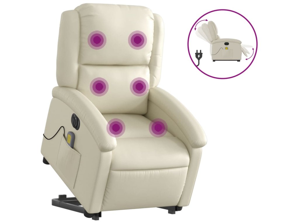 Elektrické zvedací masážní polohovací křeslo krémové umělá kůže 3204248