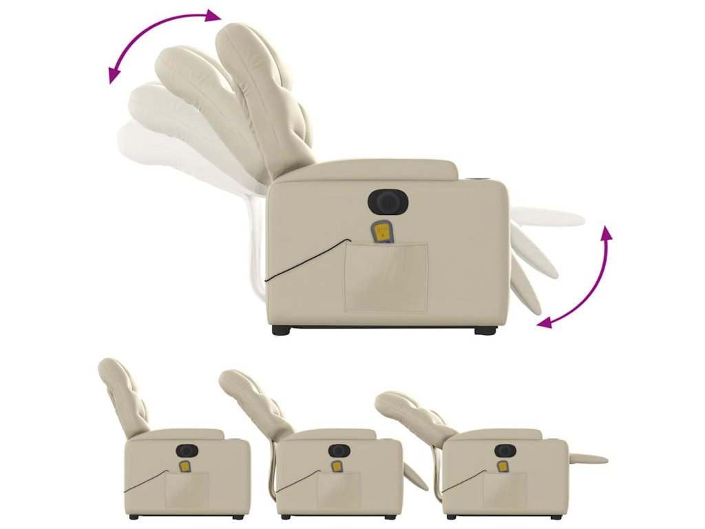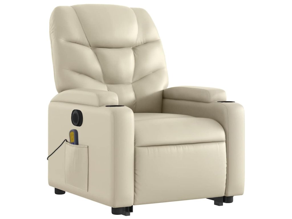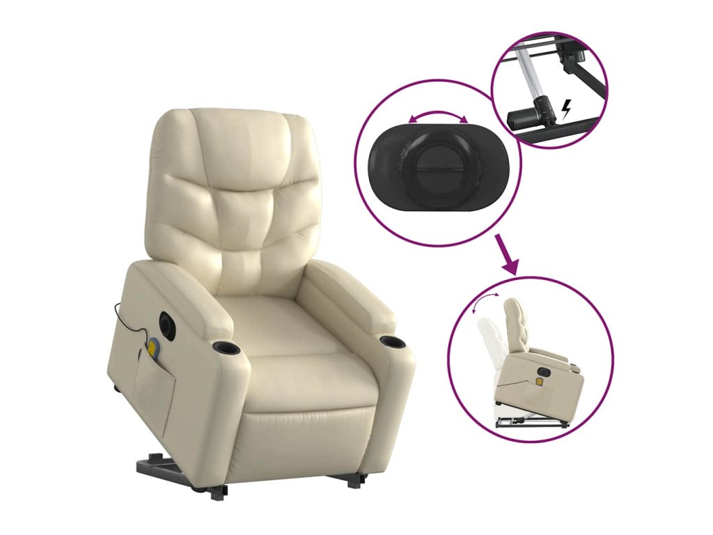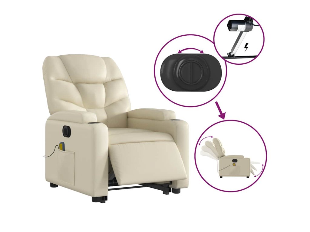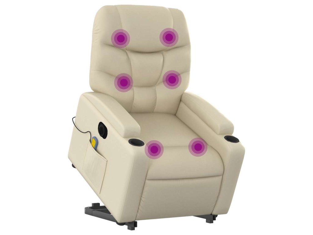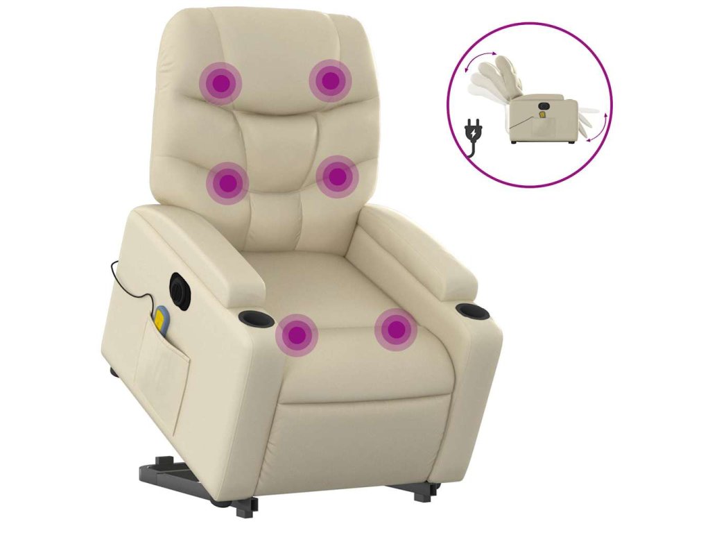 Elektrické zvedací masážní polohovací křeslo krémové umělá kůže 3204680