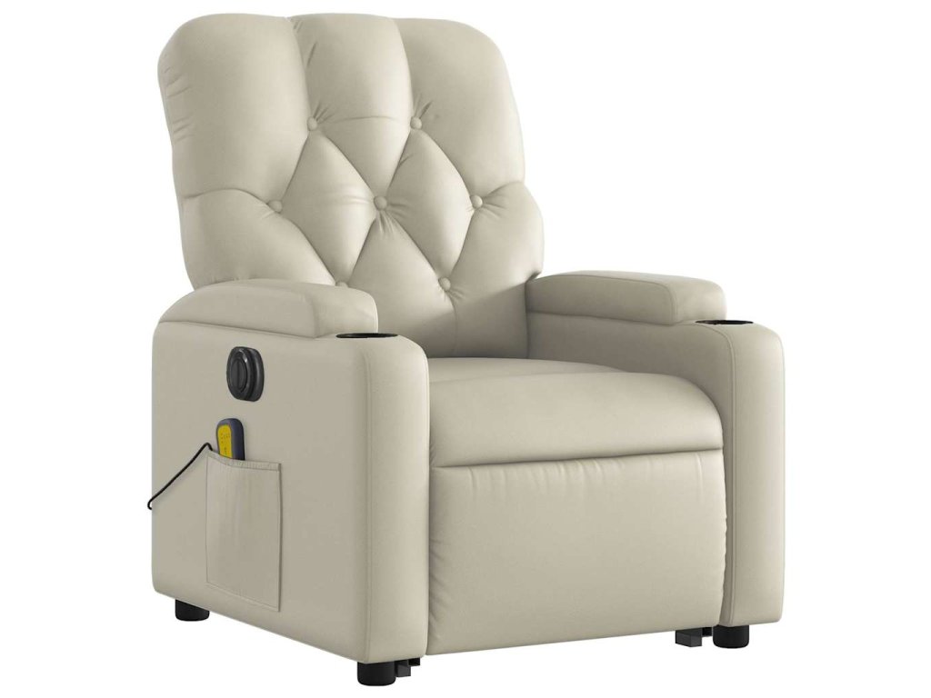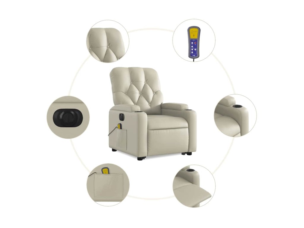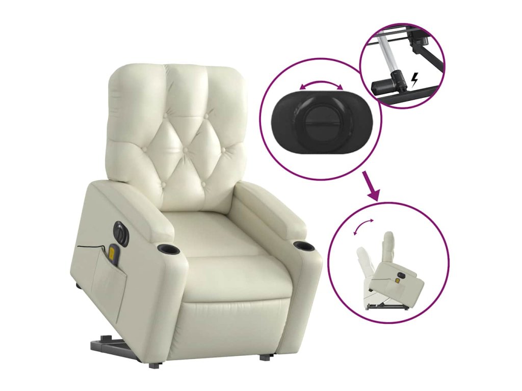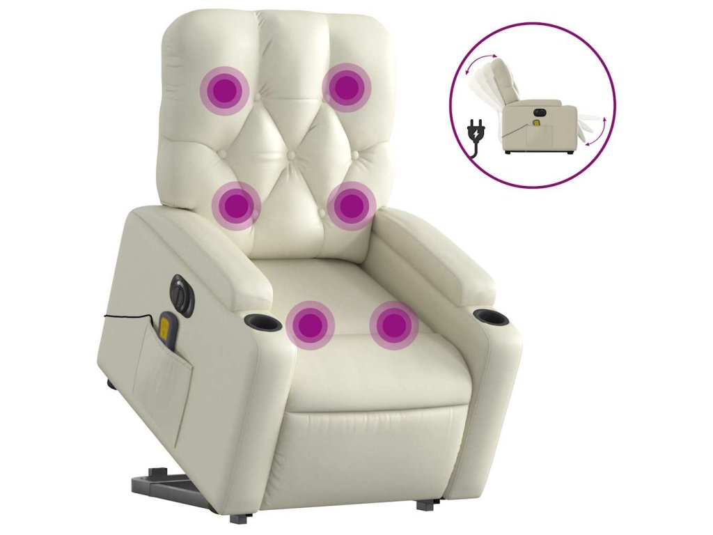 Elektrické zvedací masážní polohovací křeslo krémové umělá kůže 3204794