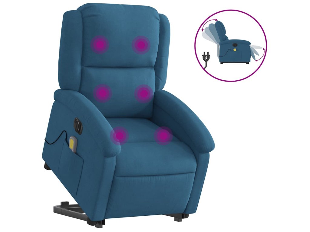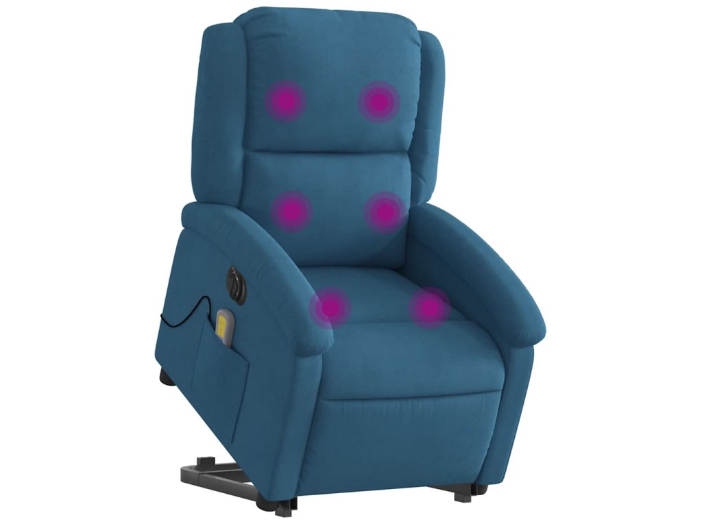 Elektrické zvedací masážní polohovací křeslo modré samet 3204343
