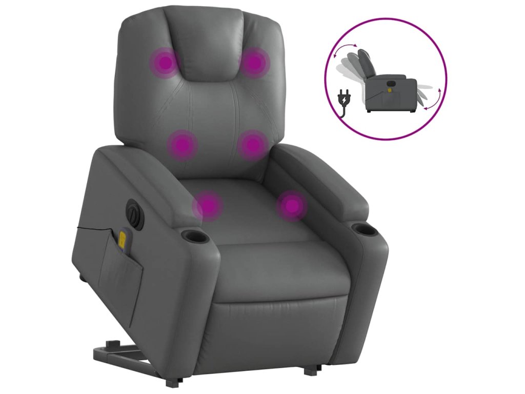 Elektrické zvedací masážní polohovací křeslo šedé umělá kůže 3204454