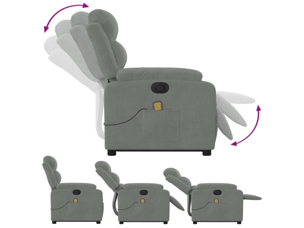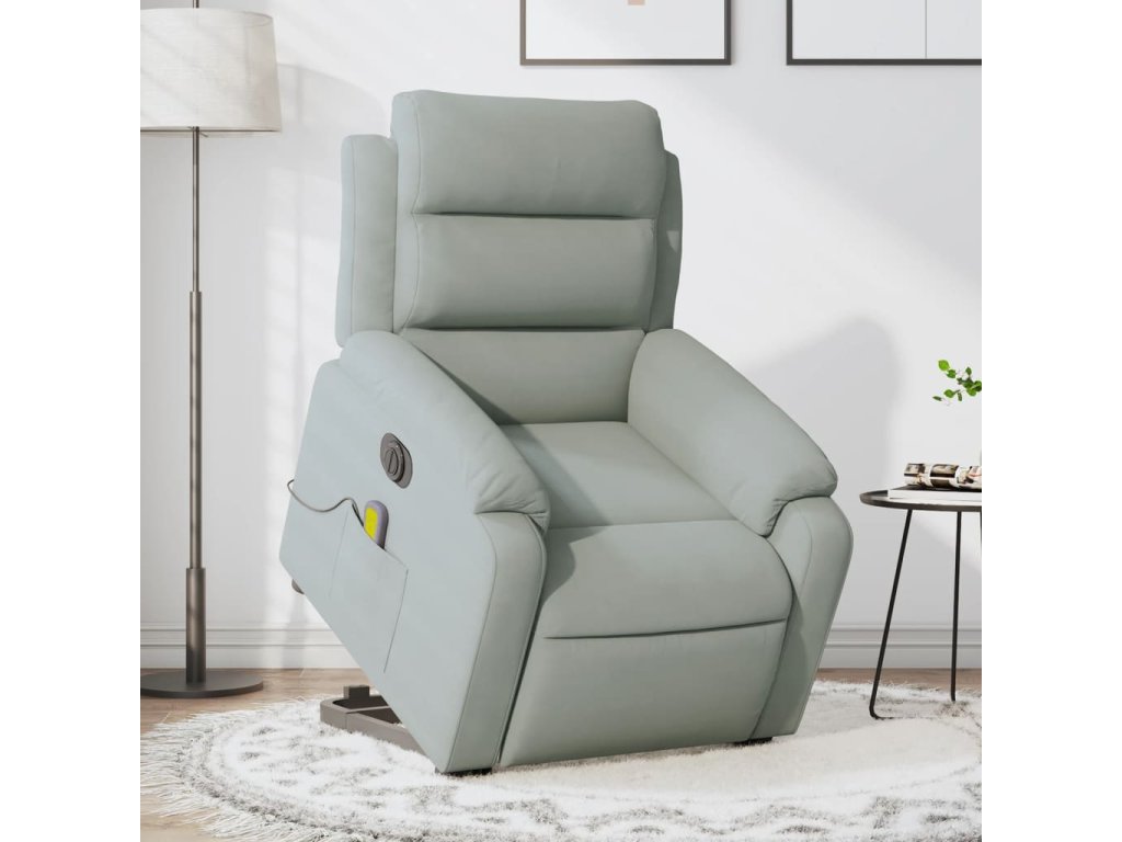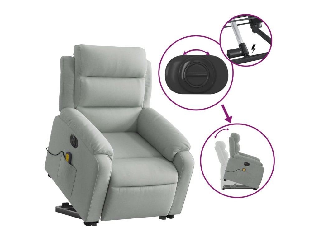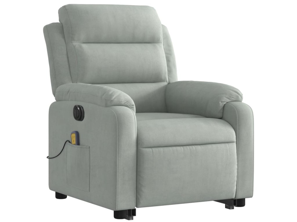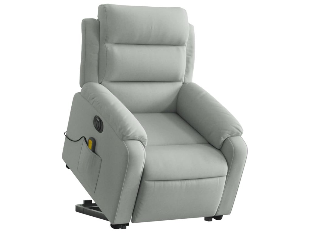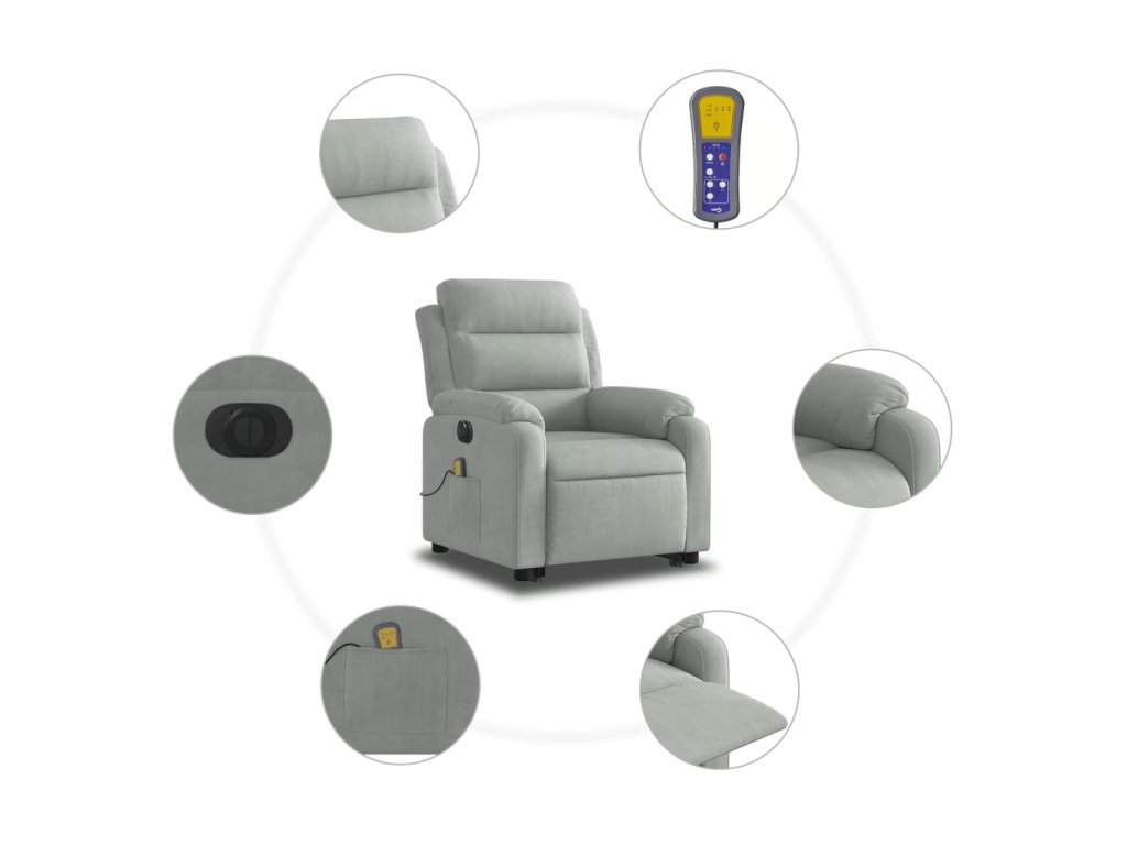 Elektrické zvedací masážní polohovací křeslo světle šedé samet 3205125