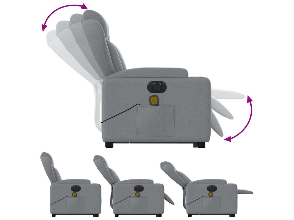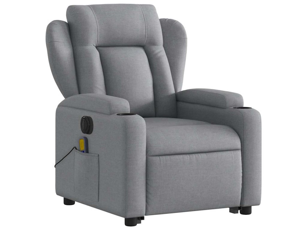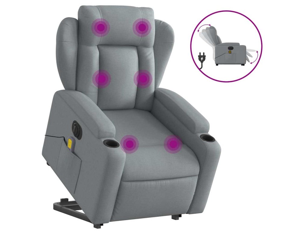 Elektrické zvedací masážní polohovací křeslo světle šedé textil 3204518