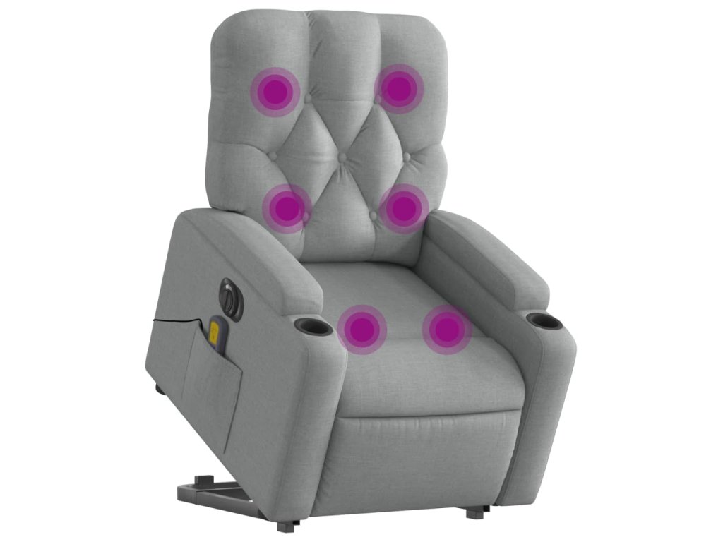 Elektrické zvedací masážní polohovací křeslo světle šedé textil 3204746