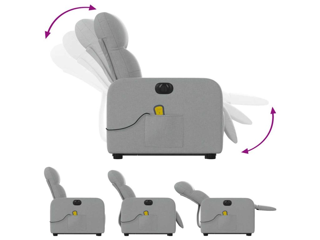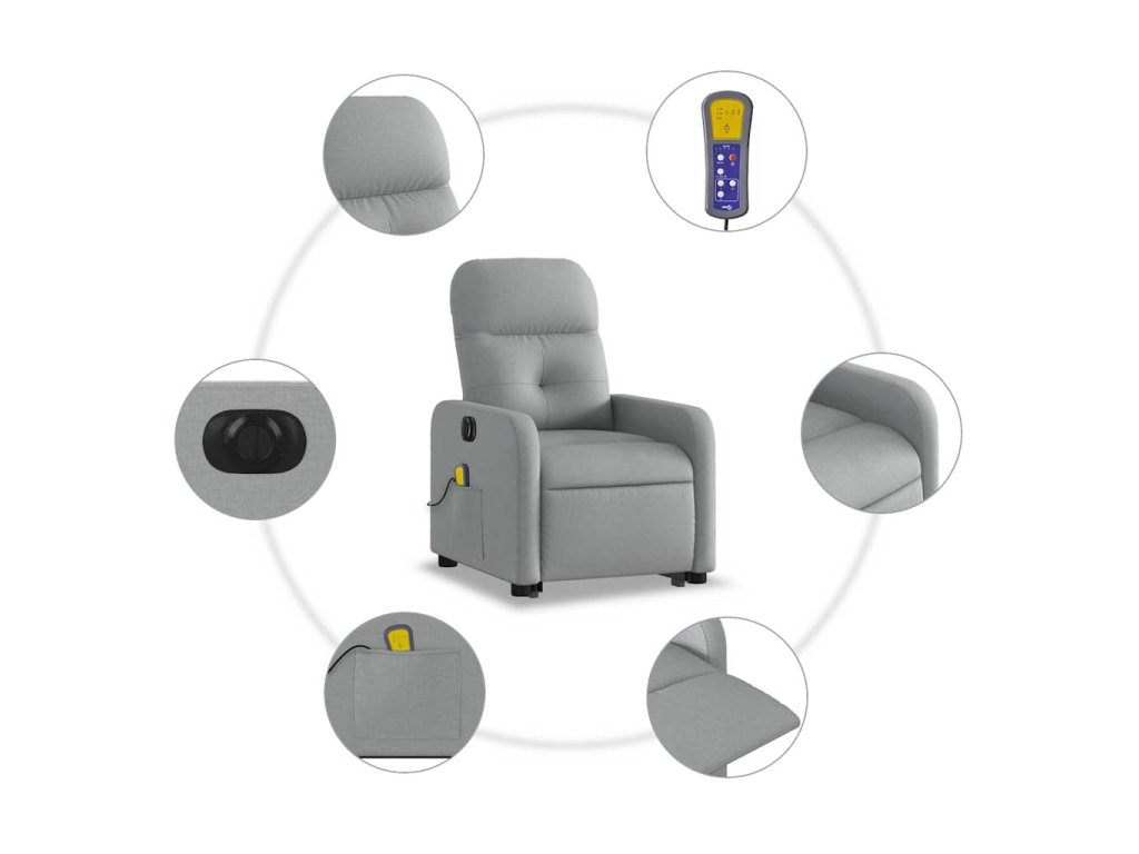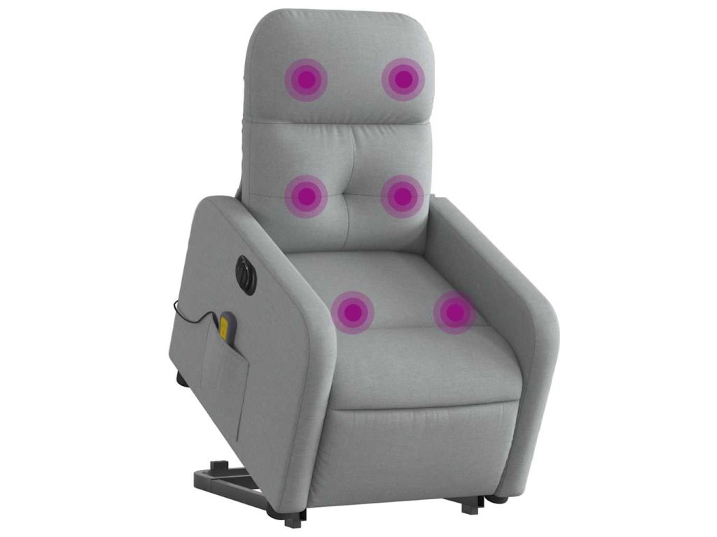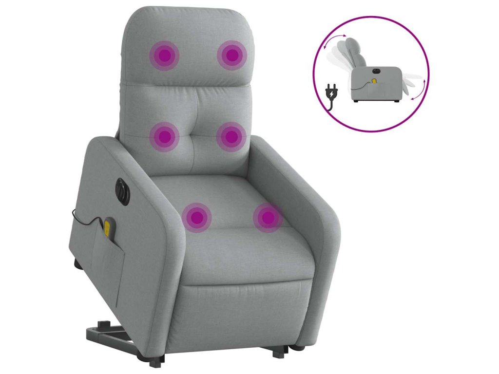 Elektrické zvedací masážní polohovací křeslo světle šedé textil 3206822