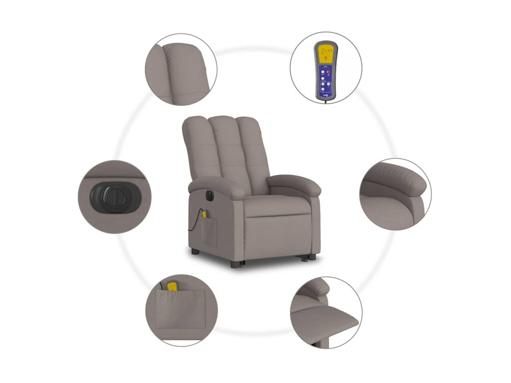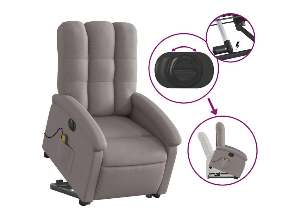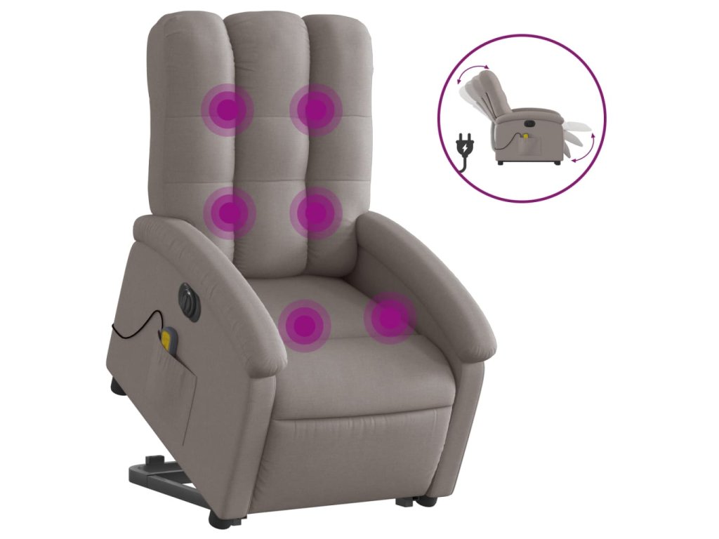 Elektrické zvedací masážní polohovací křeslo taupe textil 3204136