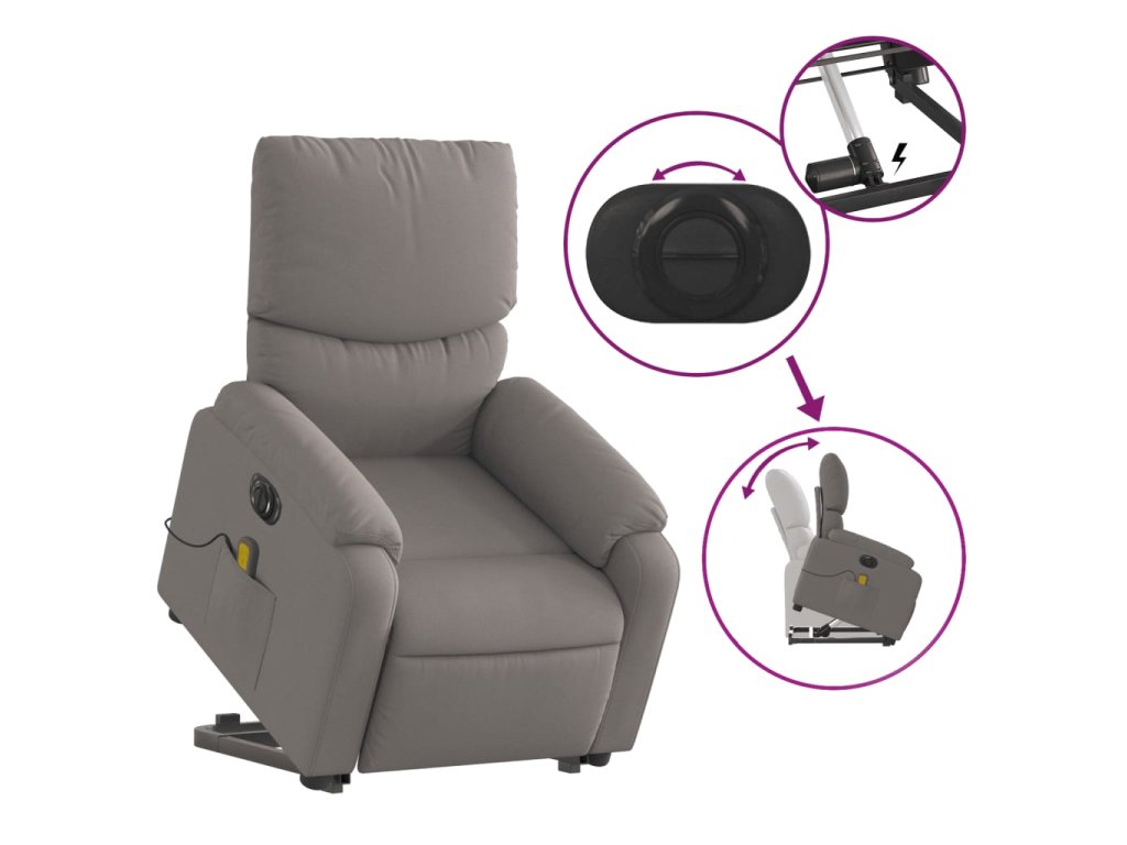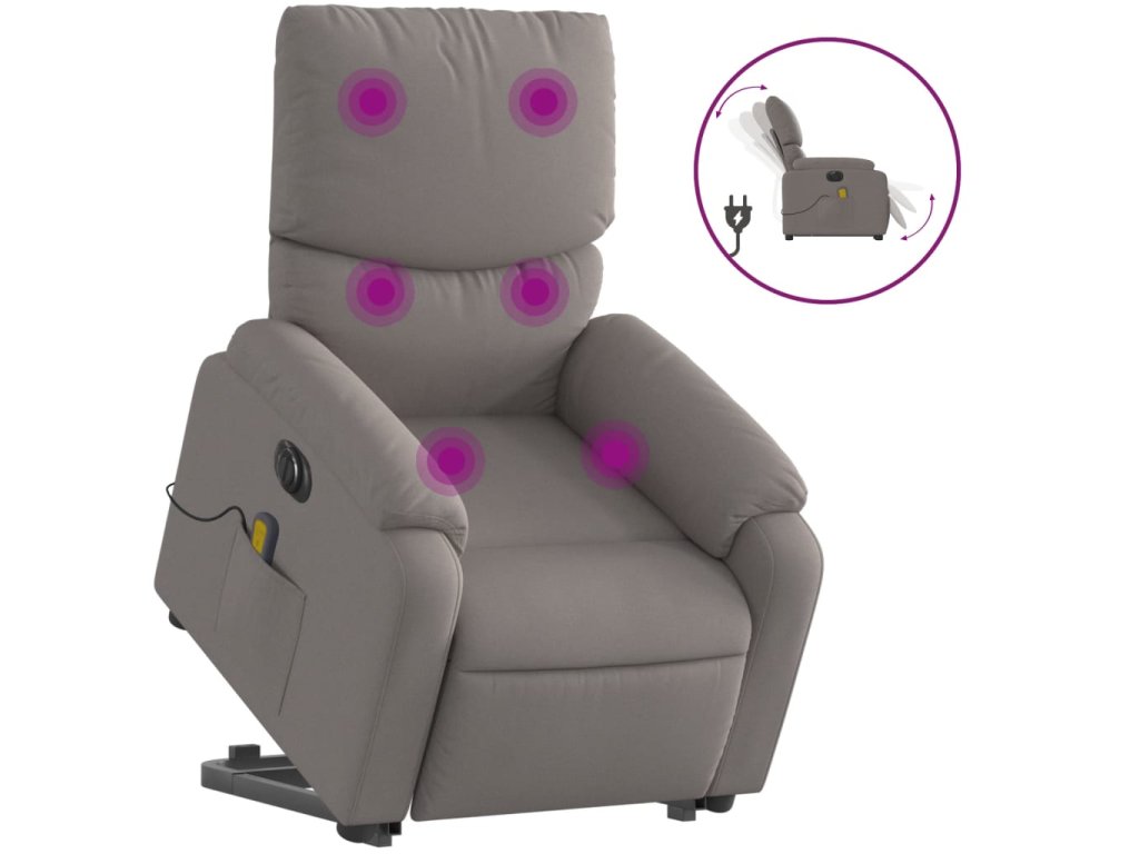 Elektrické zvedací masážní polohovací křeslo taupe textil 3204868