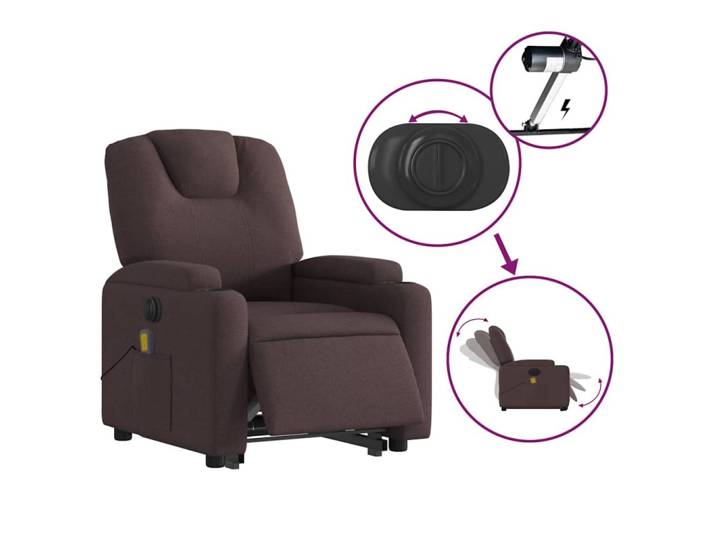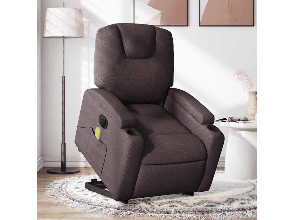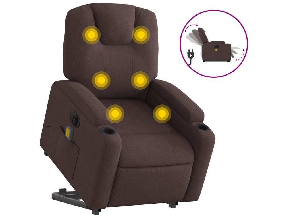 Elektrické zvedací masážní polohovací křeslo tmavě hnědé textil 3204409