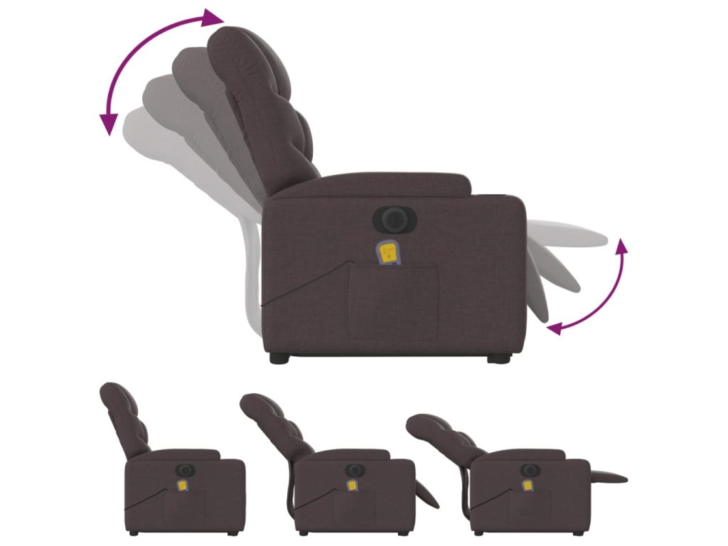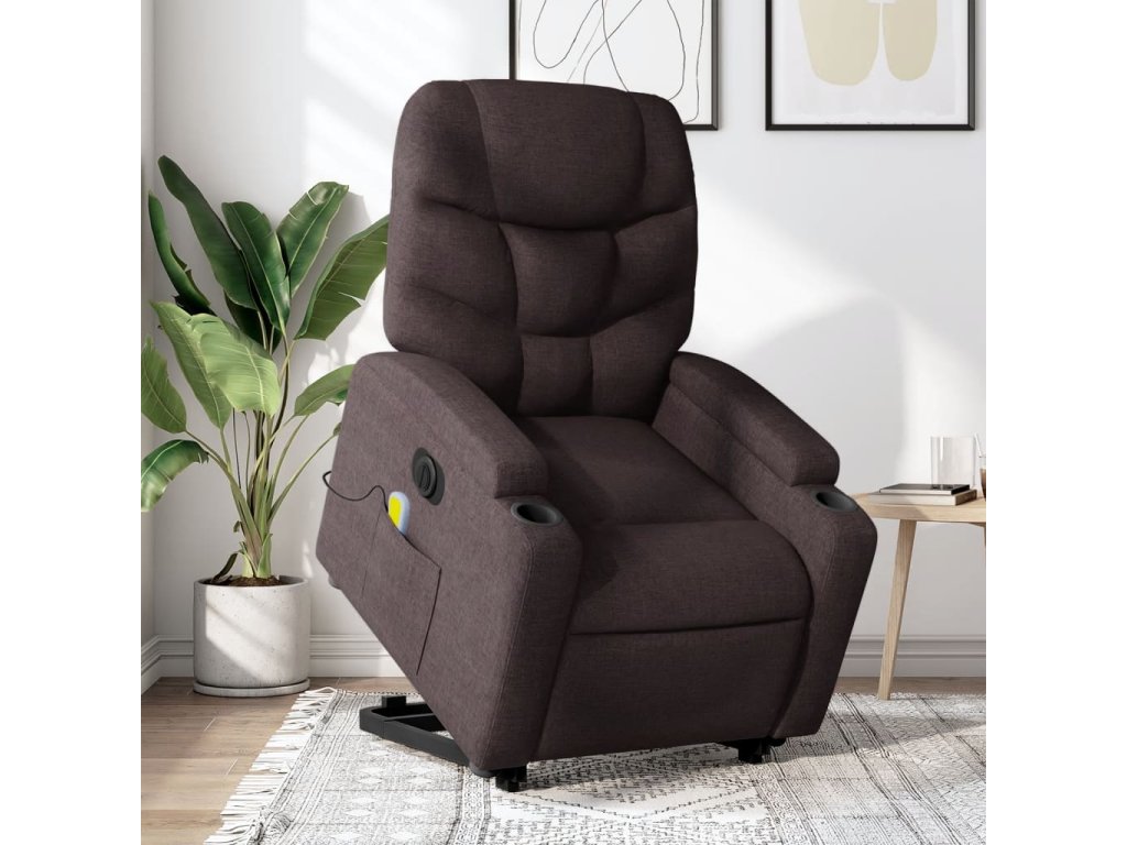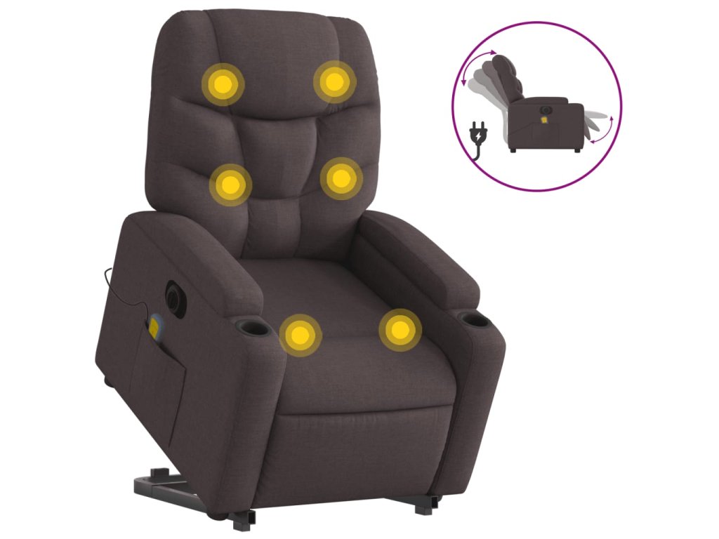 Elektrické zvedací masážní polohovací křeslo tmavě hnědé textil 3204637