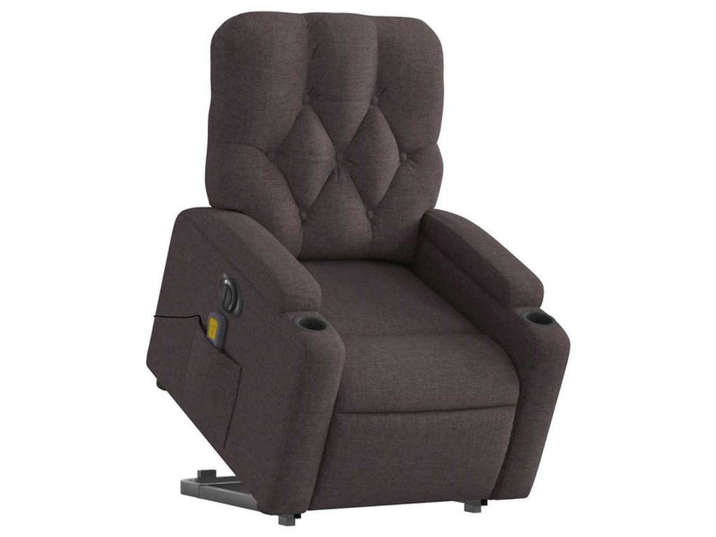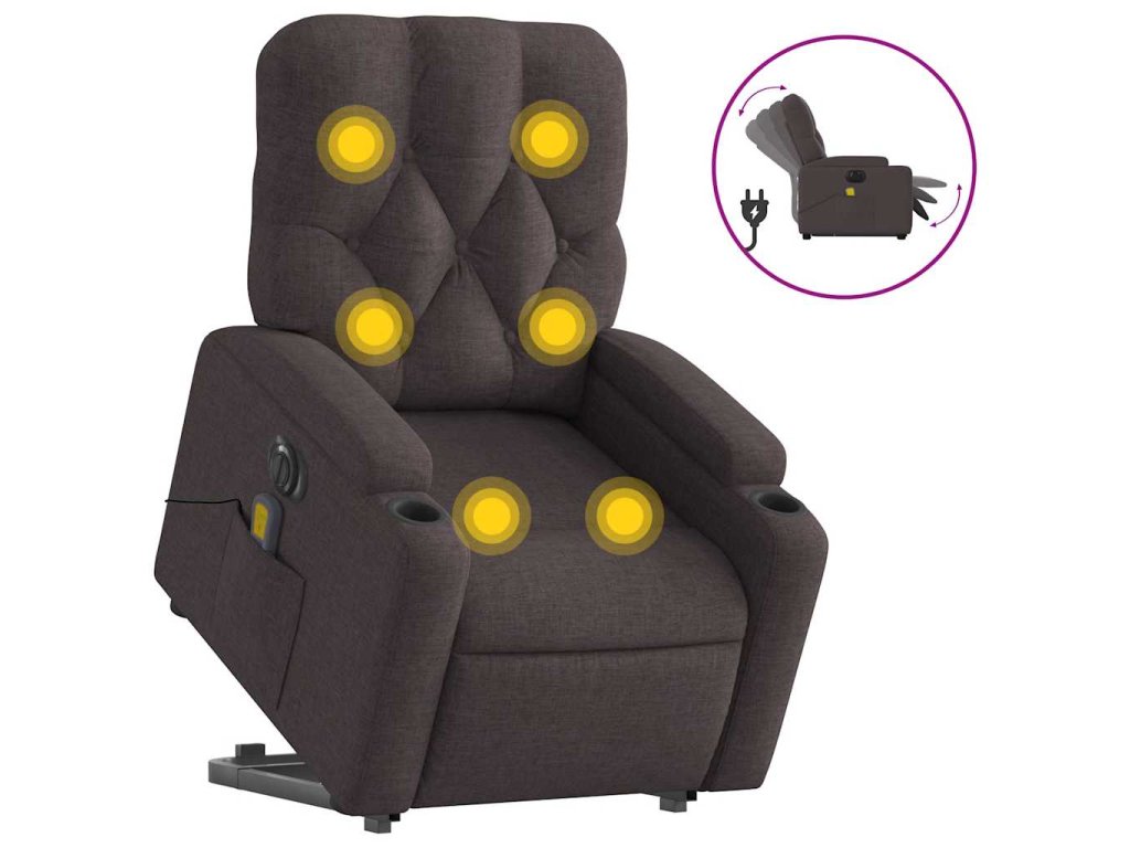 Elektrické zvedací masážní polohovací křeslo tmavě hnědé textil 3204751