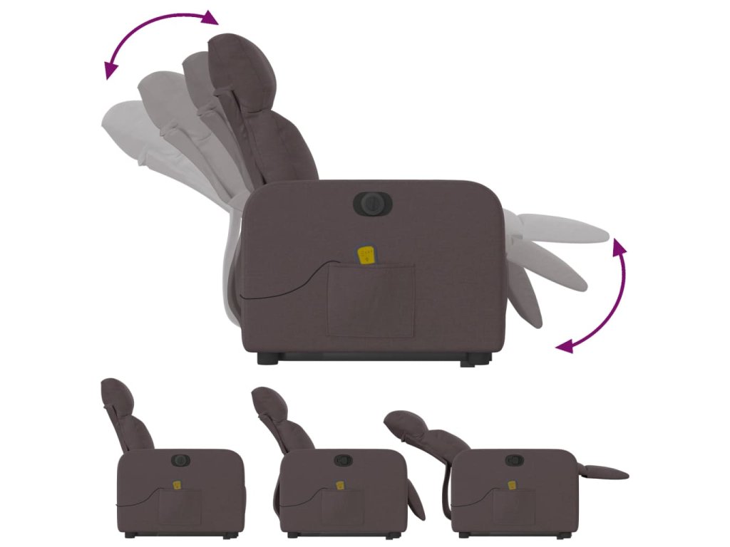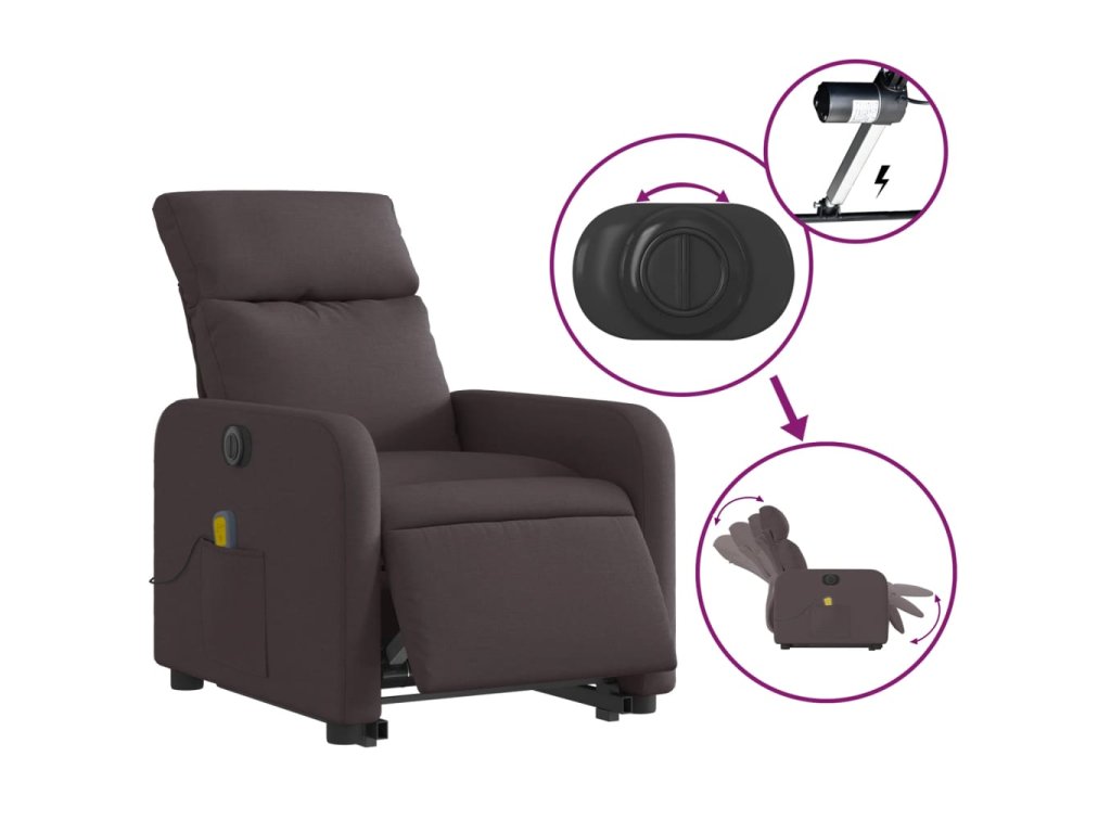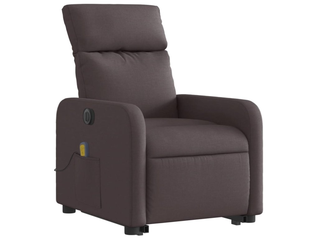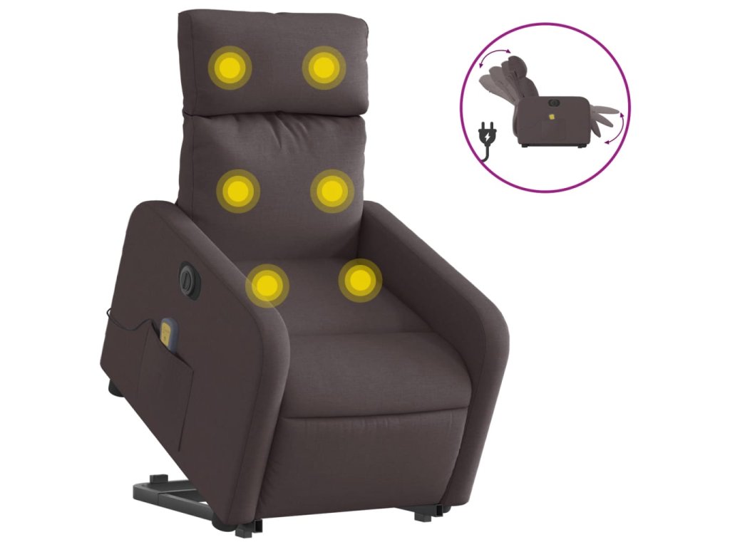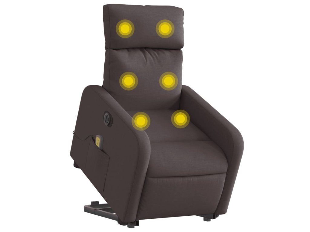 Elektrické zvedací masážní polohovací křeslo tmavě hnědé textil 3206731