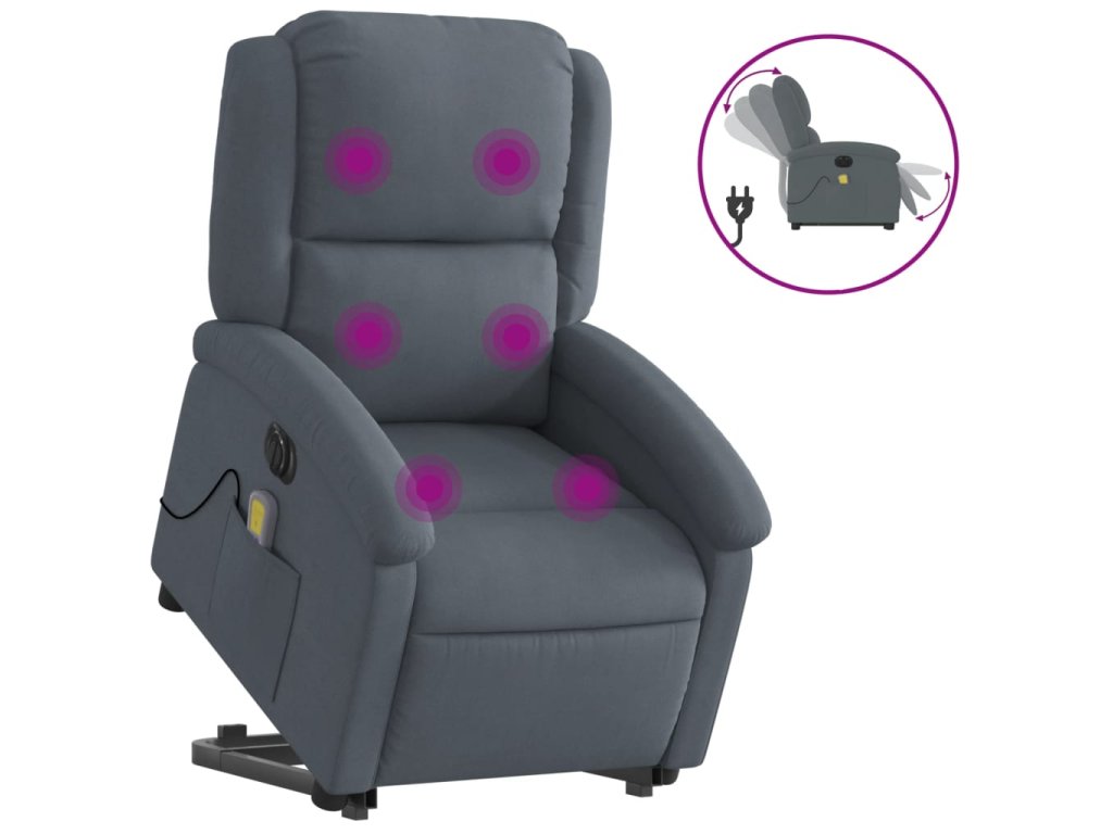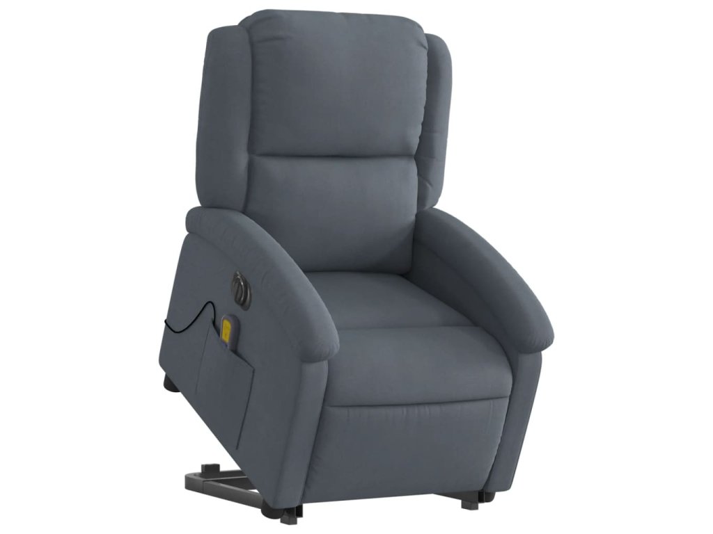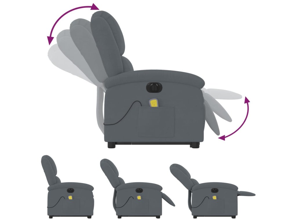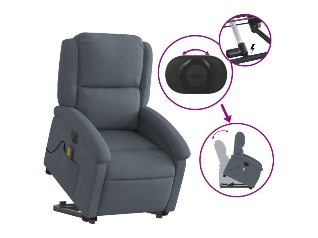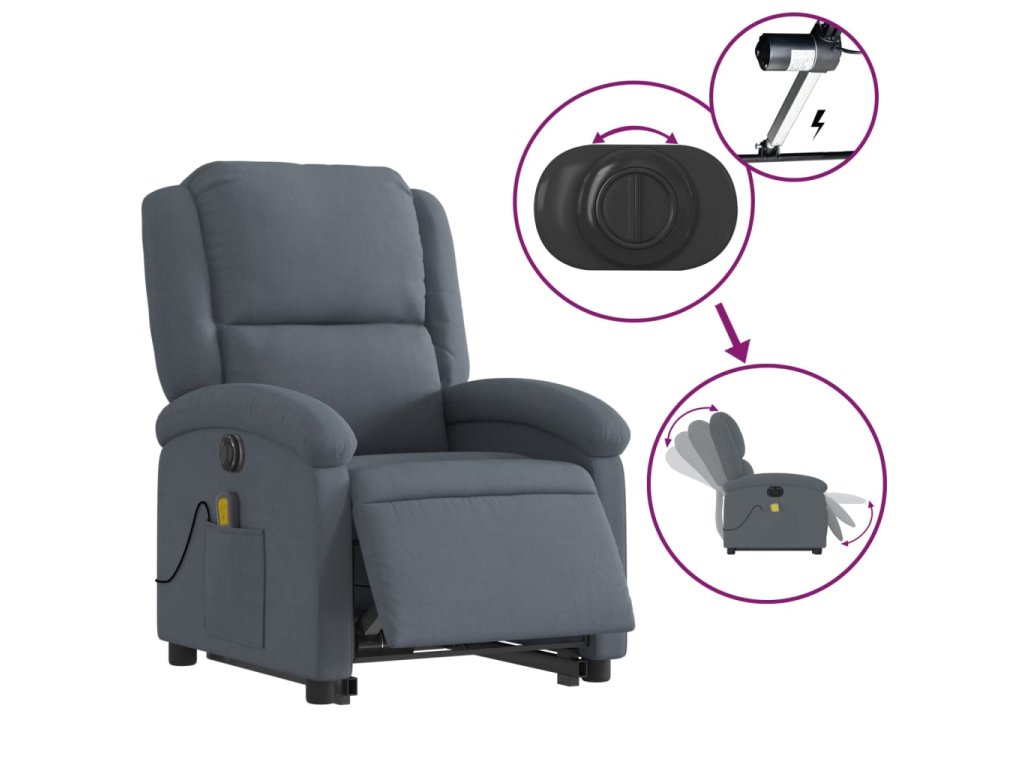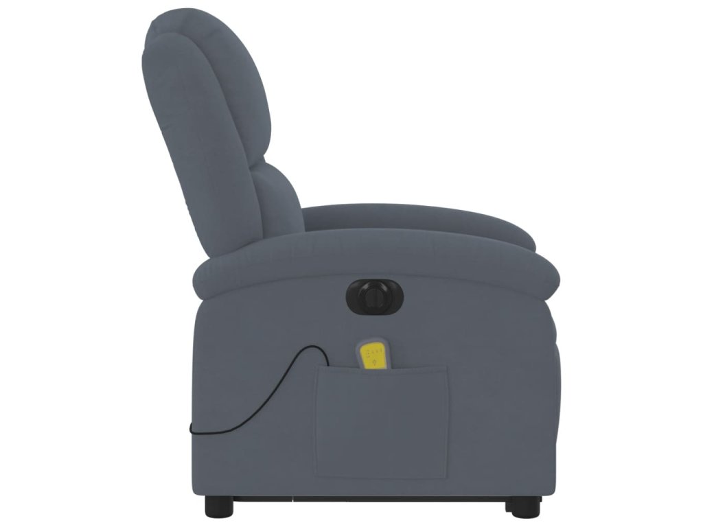 Elektrické zvedací masážní polohovací křeslo tmavě šedé samet 3204334