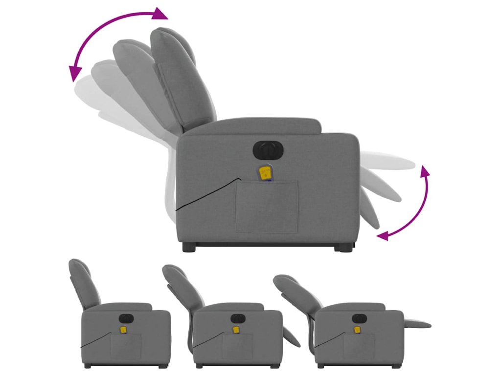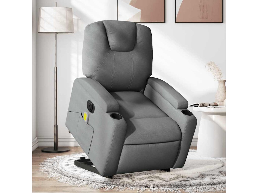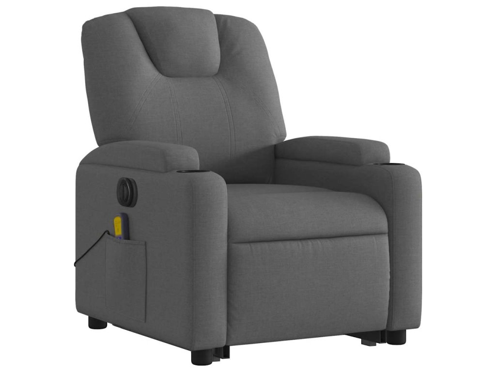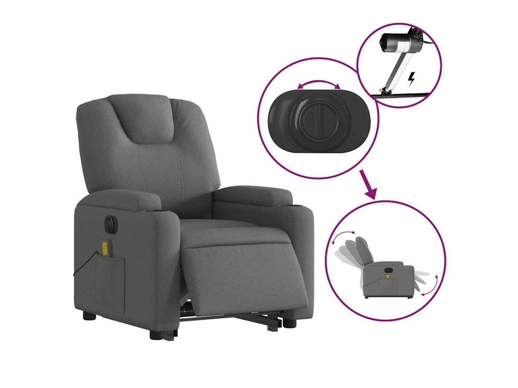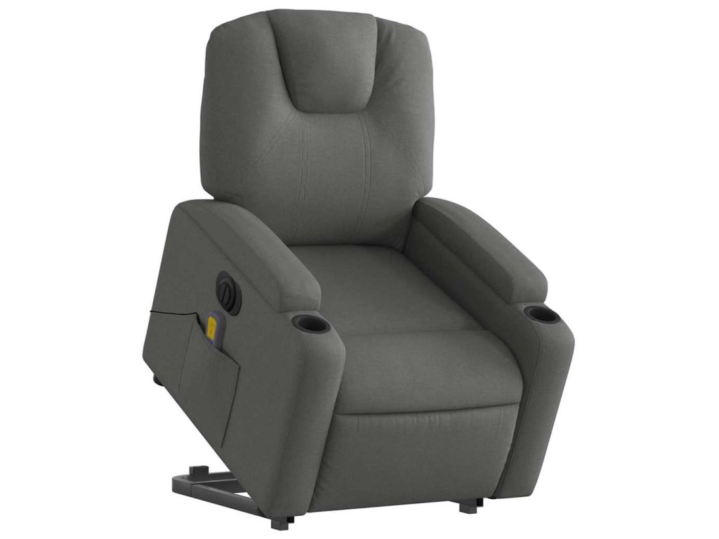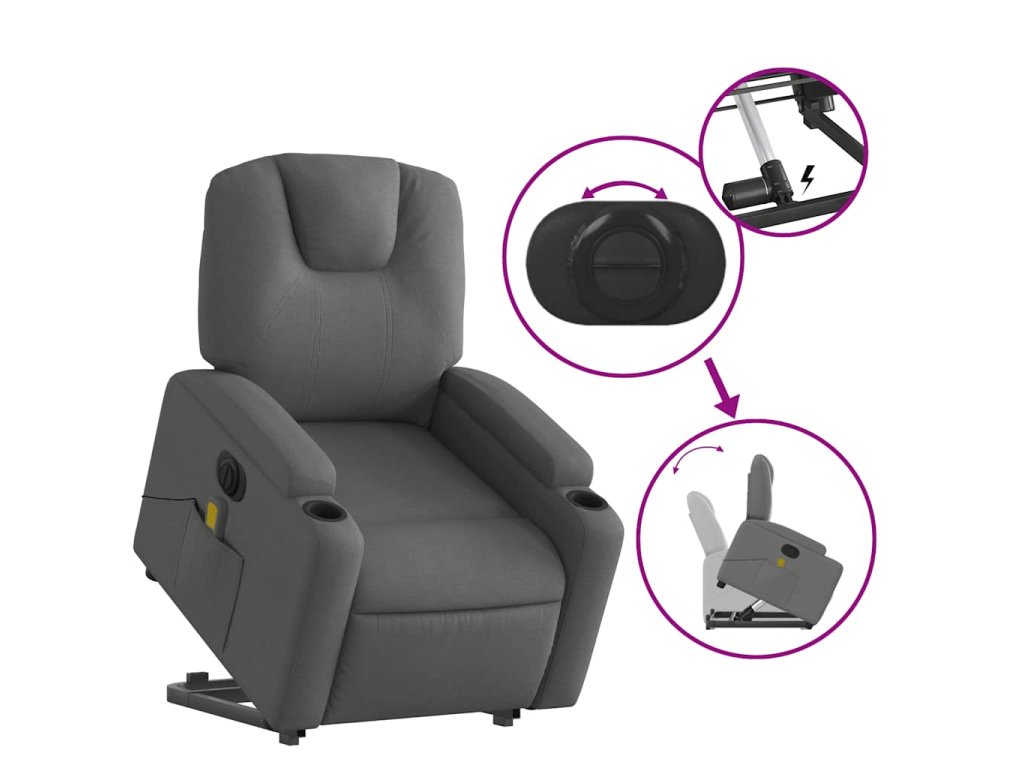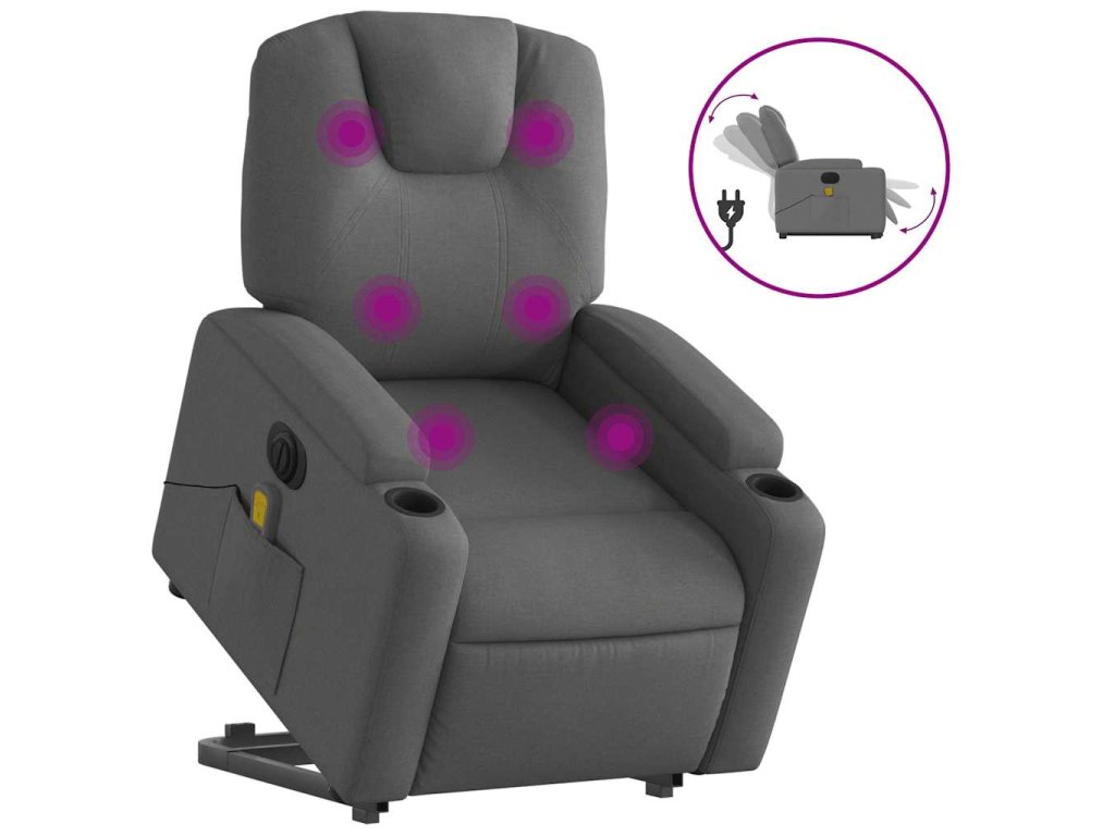Elektrické zvedací masážní polohovací křeslo tmavě šedé textil 3204405