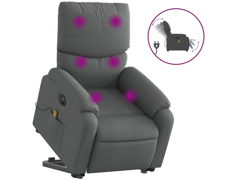 Elektrické zvedací masážní polohovací křeslo tmavě šedé textil 3204861