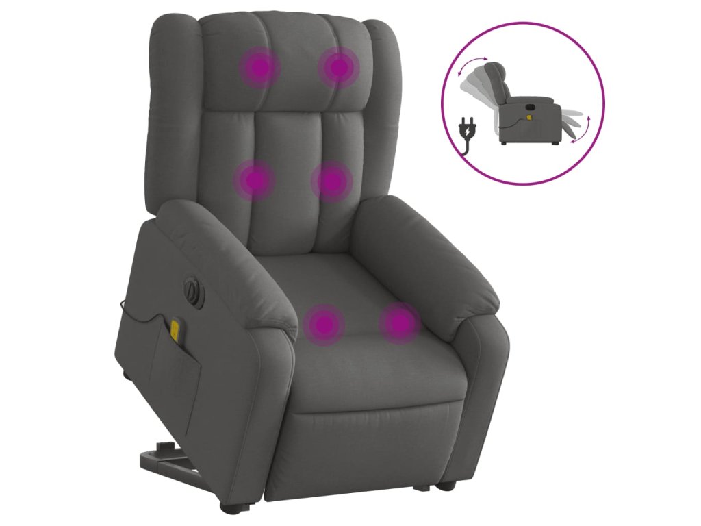 Elektrické zvedací masážní polohovací křeslo tmavě šedé textil 3205353