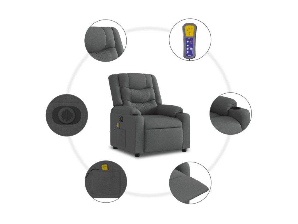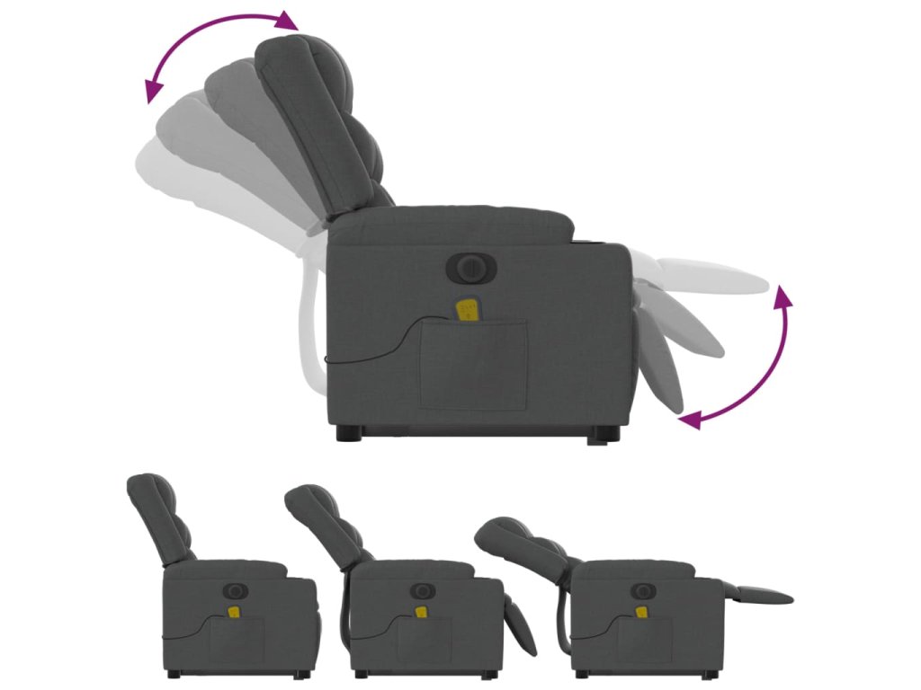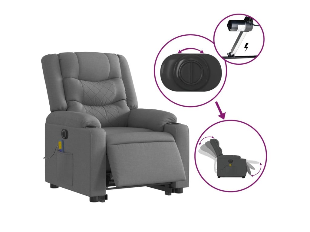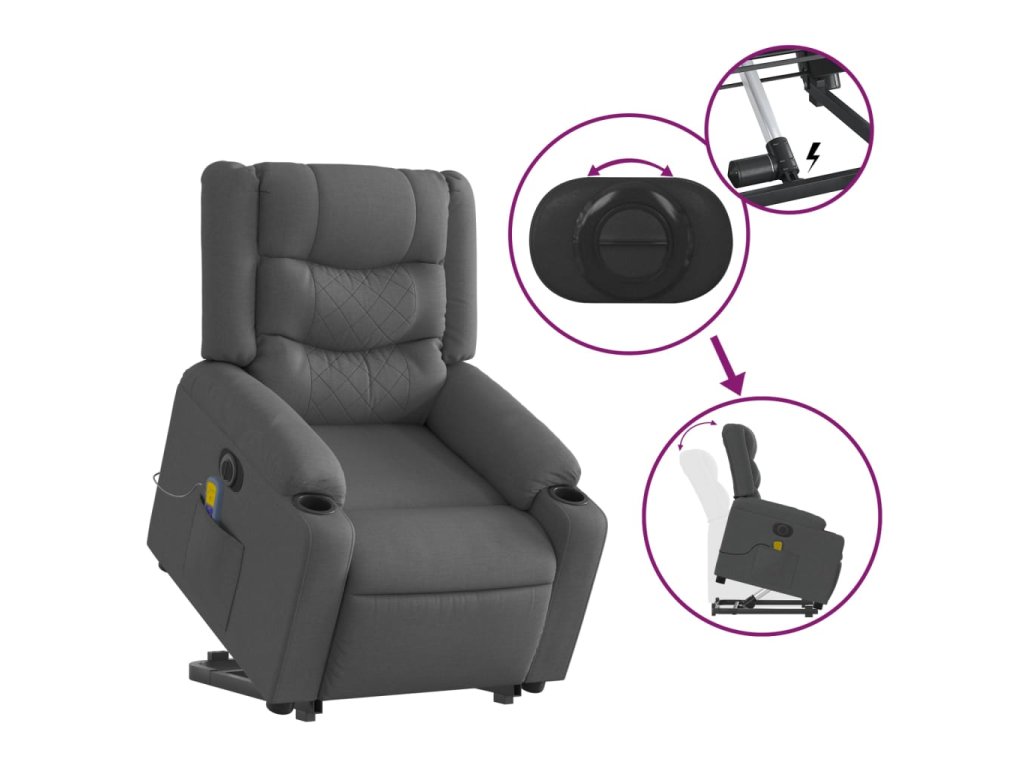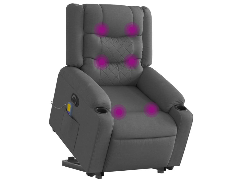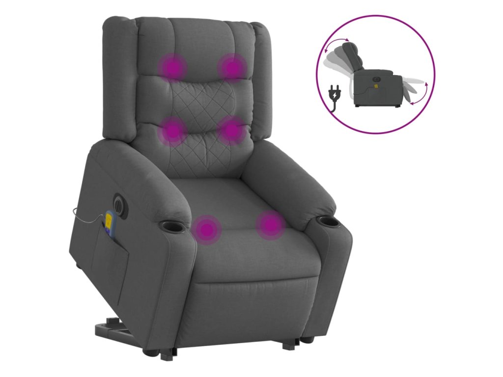 Elektrické zvedací masážní polohovací křeslo tmavě šedé textil 3206583