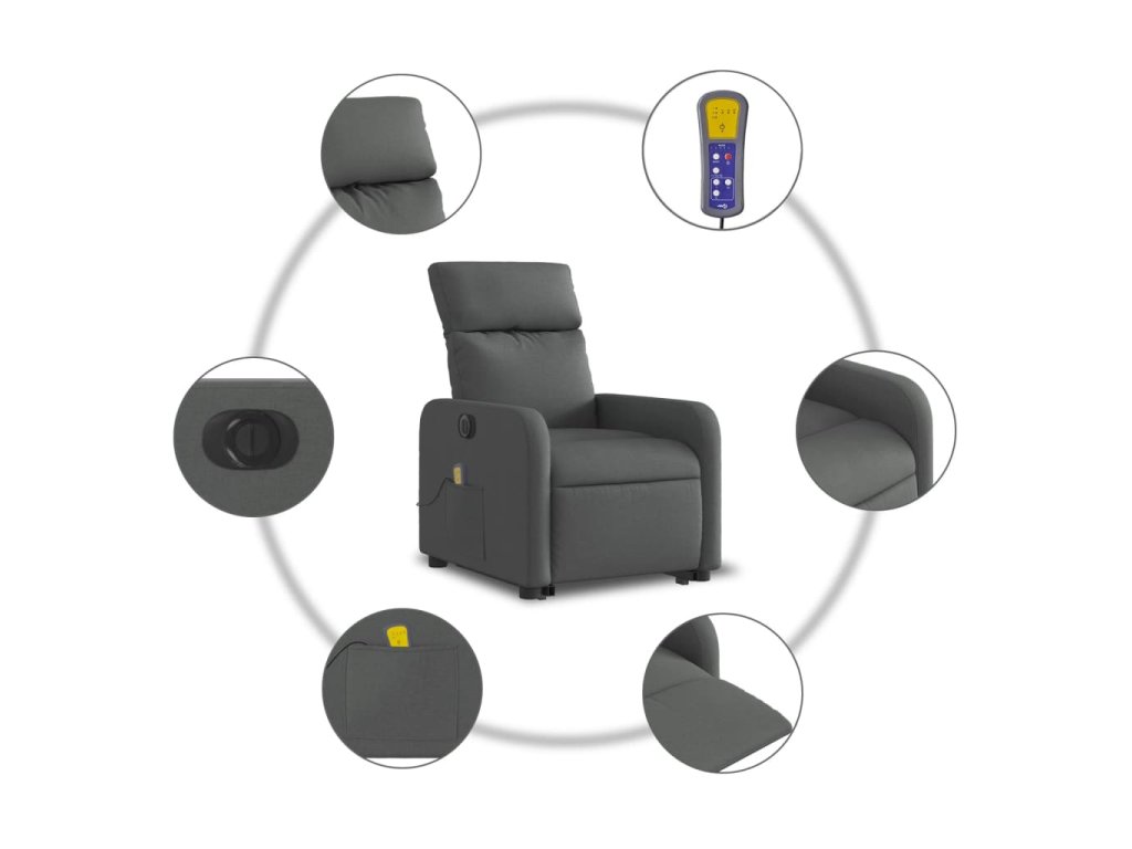 Elektrické zvedací masážní polohovací křeslo tmavě šedé textil 3206727
