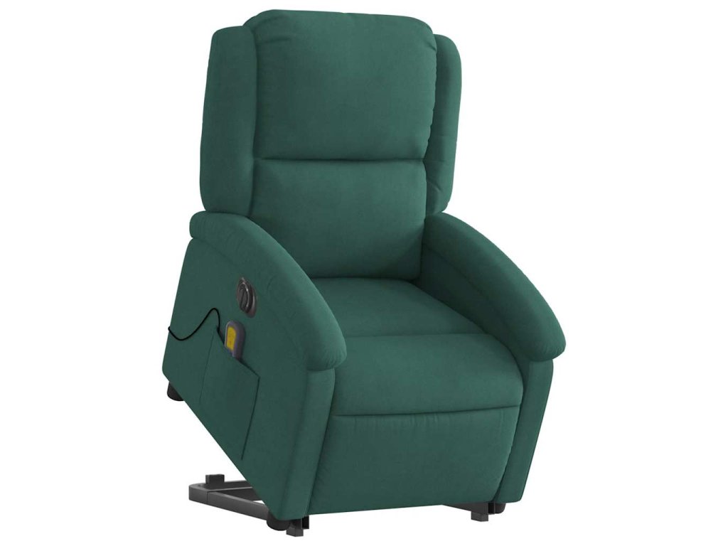 Elektrické zvedací masážní polohovací křeslo tmavě zelené samet 3204335