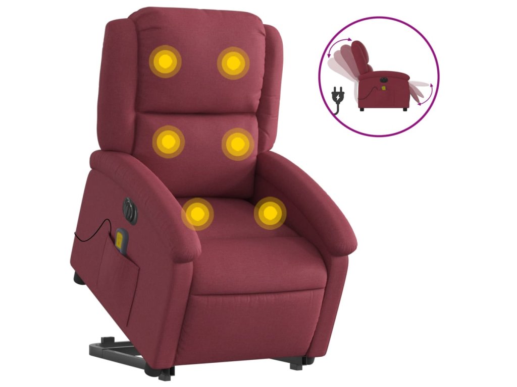 Elektrické zvedací masážní polohovací křeslo vínové textil 3204203