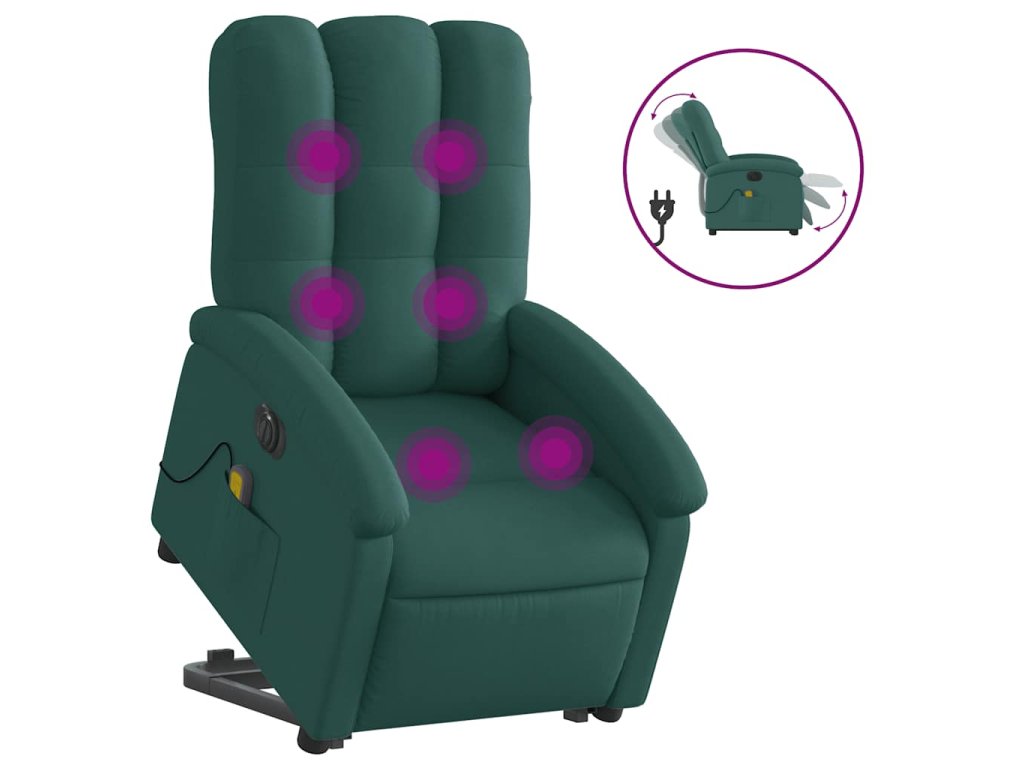 Elektrické zvedací masážní polohovací křeslo zelené textil 3204134