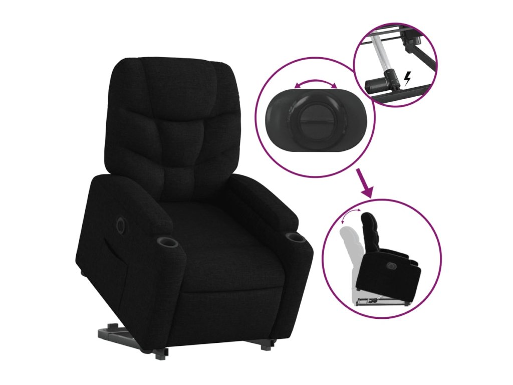 Elektrické zvedací polohovací křeslo černé textil 3204622