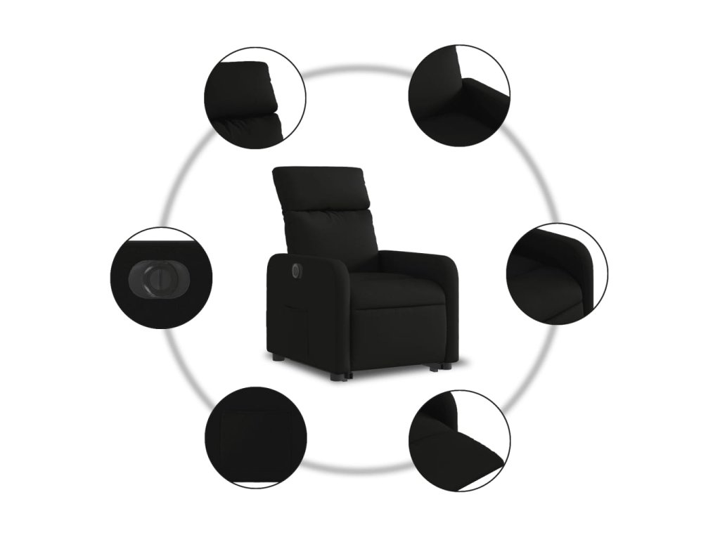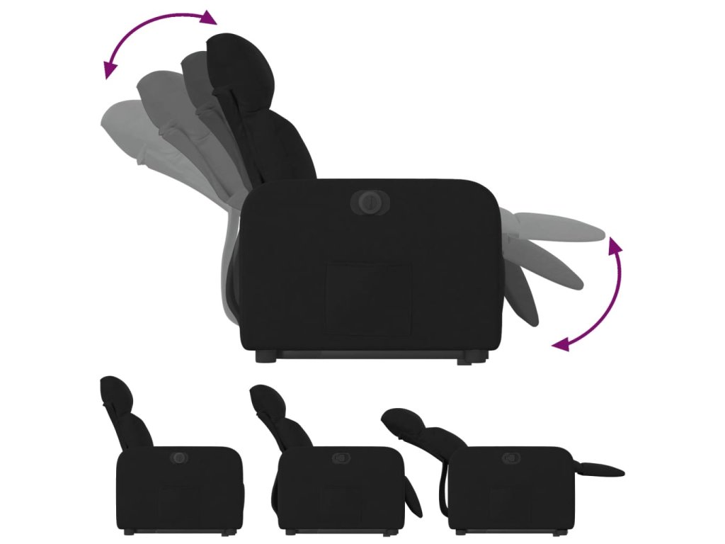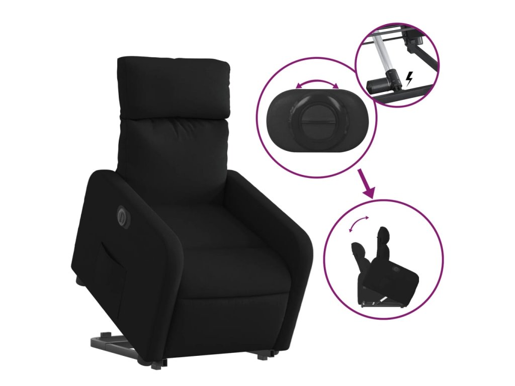 Elektrické zvedací polohovací křeslo černé textil 3206719