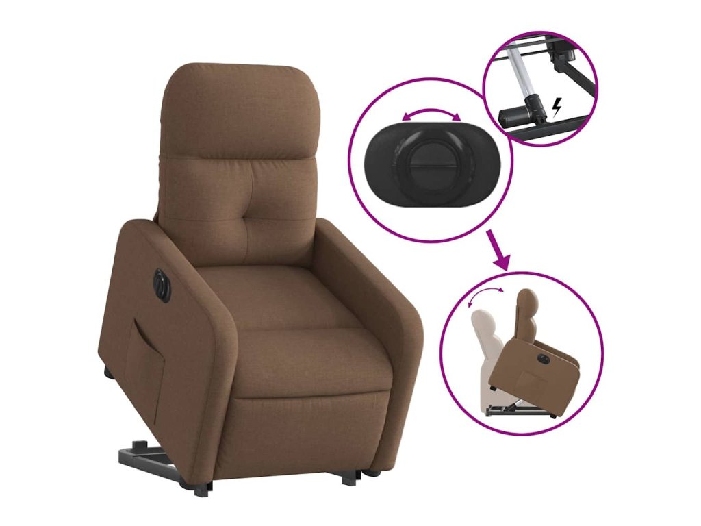 Elektrické zvedací polohovací křeslo hnědé textil 3206817